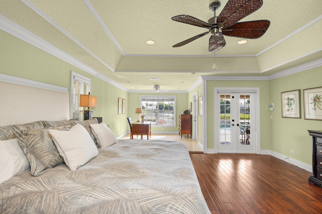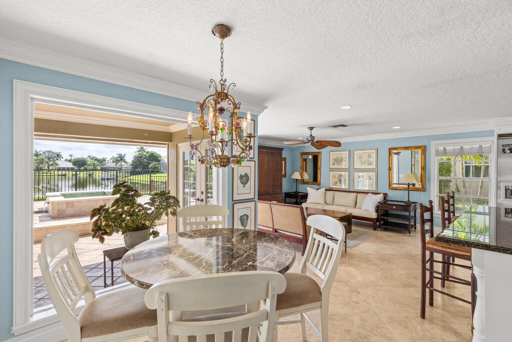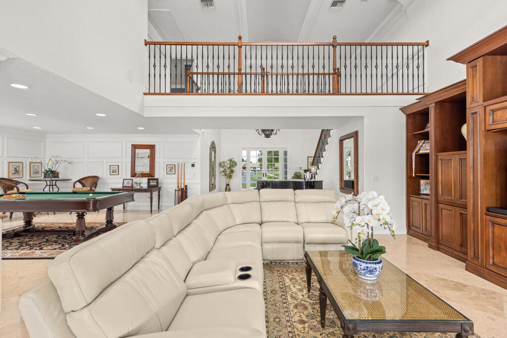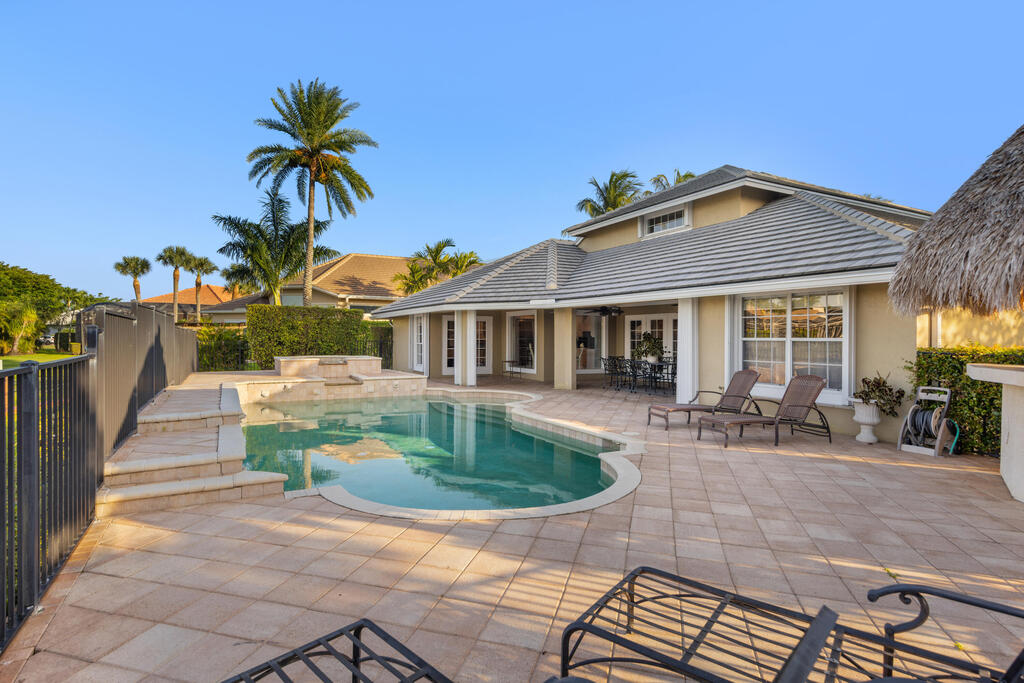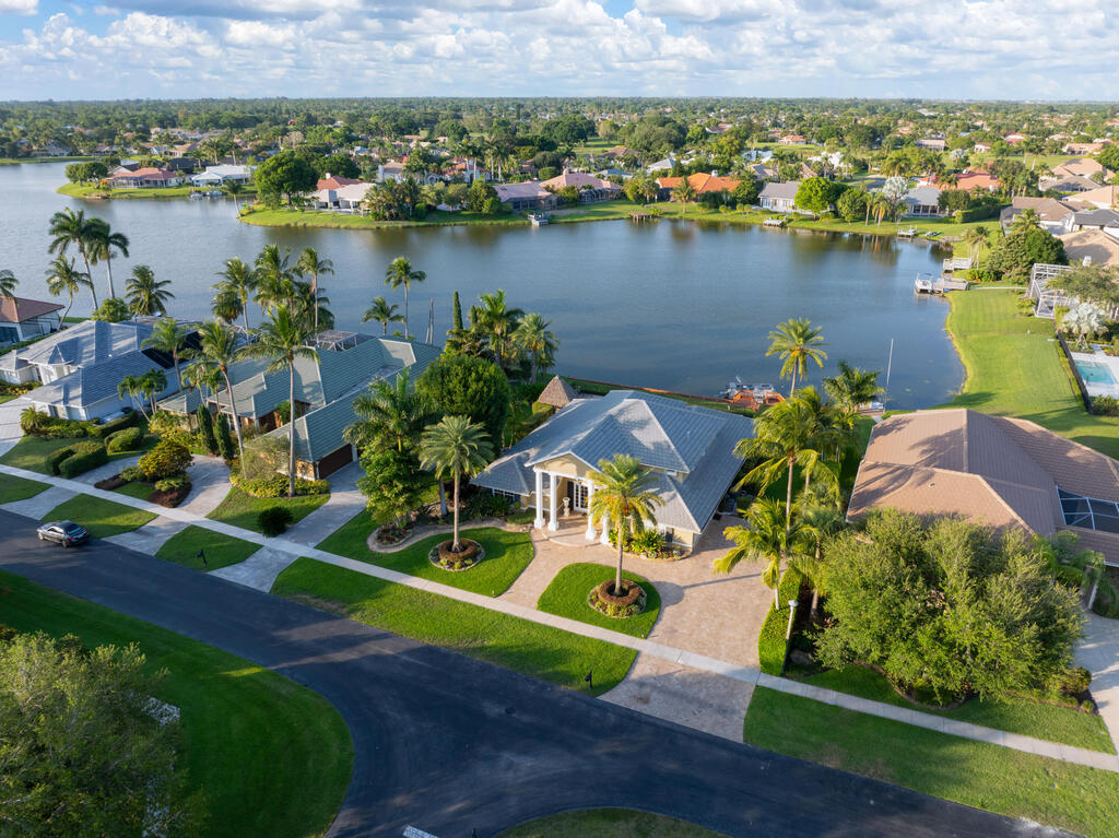 Furnished Seasonal Rental - Enjoy lakefront sunsets from this elegant home in the gated community of Polo West, near Wellington International and Global. Comes with a private dock, 19-ft pontoon boat, and pool table - perfect for waterfront entertaining. Features include double-height ceilings, crown molding, travertine floors, and a spacious first-floor primary suite with Brazilian wood floors and a luxe onyx-accented bath. The gourmet kitchen offers Viking appliances, granite counters, and a breakfast nook with lake views. Upstairs has two bedrooms with a Jack & Jill bath; one guest room is downstairs. Outdoors: covered patio, Tiki bar, summer kitchen, saltwater pool/spa with waterfall. A rare blend of luxury and equestrian living. Some pictures are virtually staged.