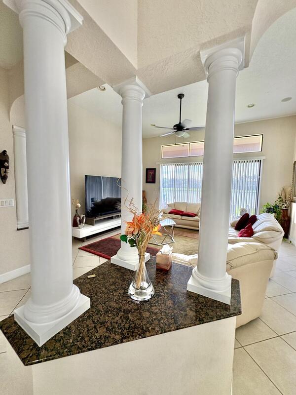 This beautifully maintained single-family home in the sought-after Versailles subdivision of Wellington, Florida, offers luxury living in an elegant, gated community. Featuring 5 spacious bedrooms and 3.5 bathrooms, this home combines comfort and sophistication with high ceilings, abundant natural light, and tasteful finishes throughout.The open-concept kitchen comes equipped with stainless steel appliances, granite countertops, and ample cabinet space, perfect for entertaining. The primary suite offers a serene retreat, lake views,large walk-in closet and a spa-inspired bathroom that includes dual vanities, a soaking tub, and a separate shower.Step outside to a private, backyard ideal for relaxing or dining al fresco or watching a fantastic Sunrise.