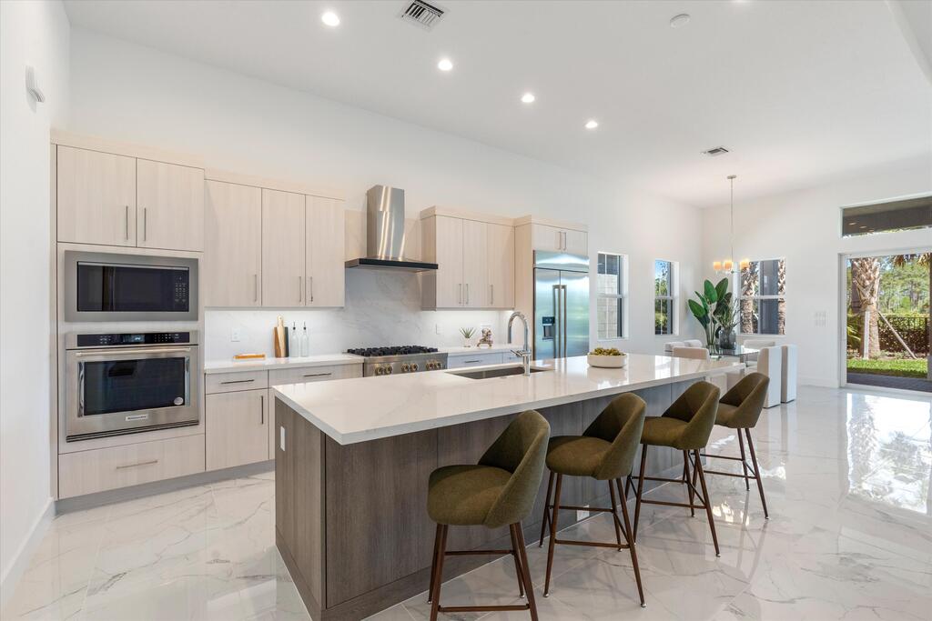 Brand new, never lived-in extended Isabella Coastal model built by Toll Brothers is ready for an immediate annual rental! Regency is a luxury 55+ community in Palm Beach Gardens' Avenir. This residence was built with loads of exceptional high-end upgrades and no detail was left untouched as it was designed as the owners dream home. This stunning one level 3 bedroom + Den, 2.5 bathroom property is nearly 3000 sq. ft. with soaring ceilings and located on a premium lot backing to the private preserve. So many extras and the finest designer touches include premium tiles, flooring, cabinetry, hardware and lighting selections and an expanded primary bedroom and lanai. Impact glass throughout! Fancy kitchen appliance package, gas range, tankless gas water heater and oversized garage door.