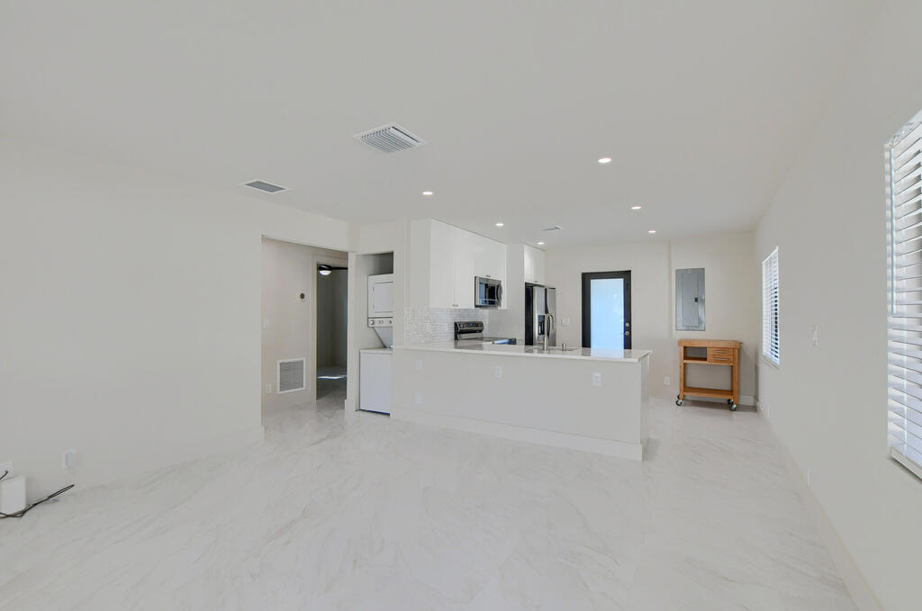 This 2 bedroom, 1 bathroom rental located in Delray Beach and only an 8 minutes drive to downtown. It is a cozy and comfortable space. The unit is located in a great area of town and is close to many shops, restaurants, and other amenities. It also has easy access to highways, making it convenient for commuting to work or exploring the city. The apartment features modern appliances and finishes, and the bathroom is equipped with a shower/tub combo. The unit is also equipped with complete impact glass and a W/D.