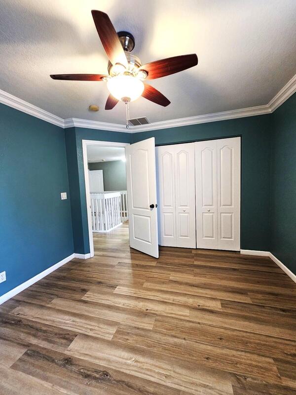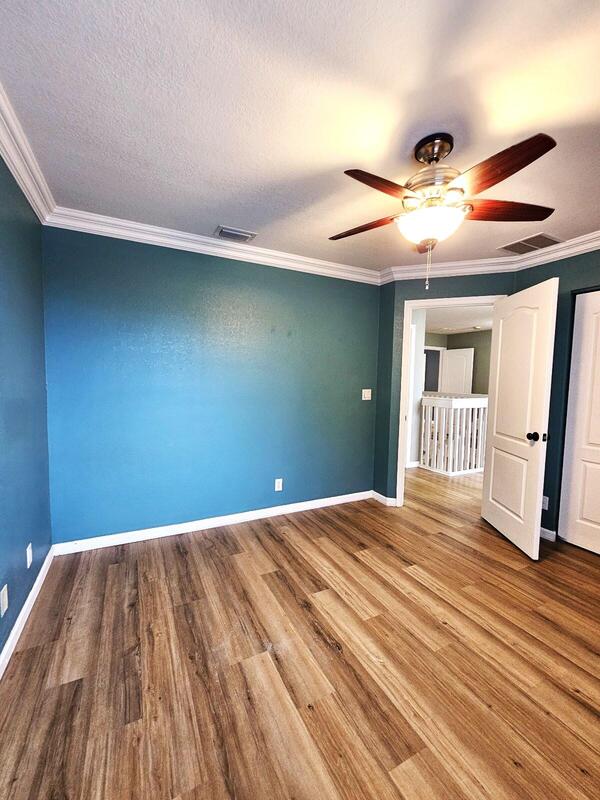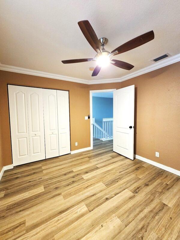 Beautifully updated home with a redesigned kitchen featuring abundant storage, pantry, built-in desk, pullouts, copper sink, and quartz countertops. Downstairs offers new luxury laminate flooring, a half bath, laundry room, and spacious living area with sliders opening to a fully fenced backyard, ideal for entertaining. Upstairs includes four bedrooms and two full baths, including a primary suite with a large walk-in closet, double sinks, walk-in shower, and soaking tub. Additional highlights include accordion shutters, ceiling fans, ample closet space, and extra storage under the stairs. With no rear neighbors, enjoy open views from both levels. Victoria Grove is a gated community with clubhouse, pool, spa, gym, tennis, tot lot, picnic area, and more. HOA includes basic cable, alarm,