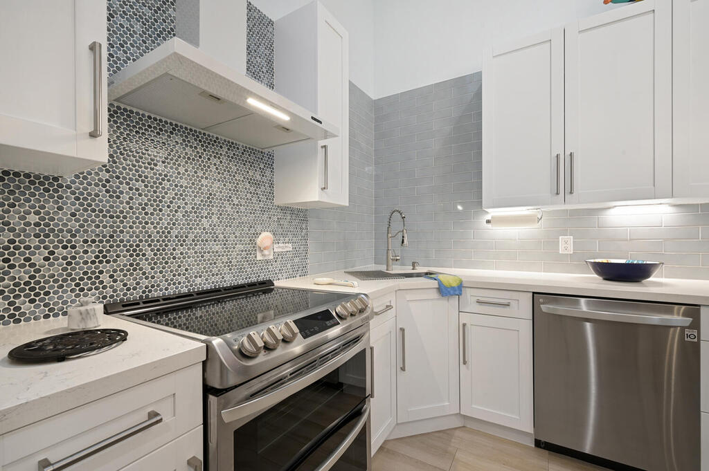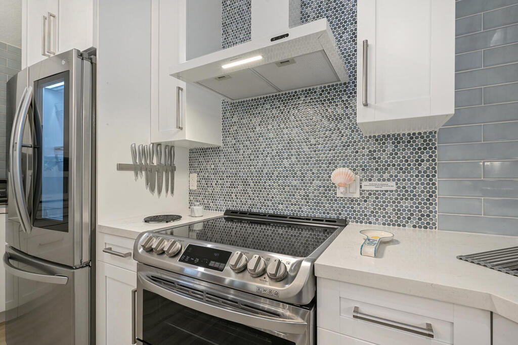 New to market! Available January, February, and March of 2026. Welcome to your very own seaside oasis. Oceanside Terrace is a quiet, gated community in an ideal location with a short walk to Jupiter beach and the Riverwalk. Walk to local shops and restaurants. You will LOVE this 2 BR / 2 Bath, split floor plan, ONE STORY villa that has been completely renovated. The master bedroom has a king-size bed while the guest room has a queen. The large custom kitchen boasts high-end finishes and appliances. The vaulted ceilings give this villa a spacious feel. Enjoy your large private courtyard with the heated community pool only steps away. Small dog okay. Wi-Fi and DirecTV included.