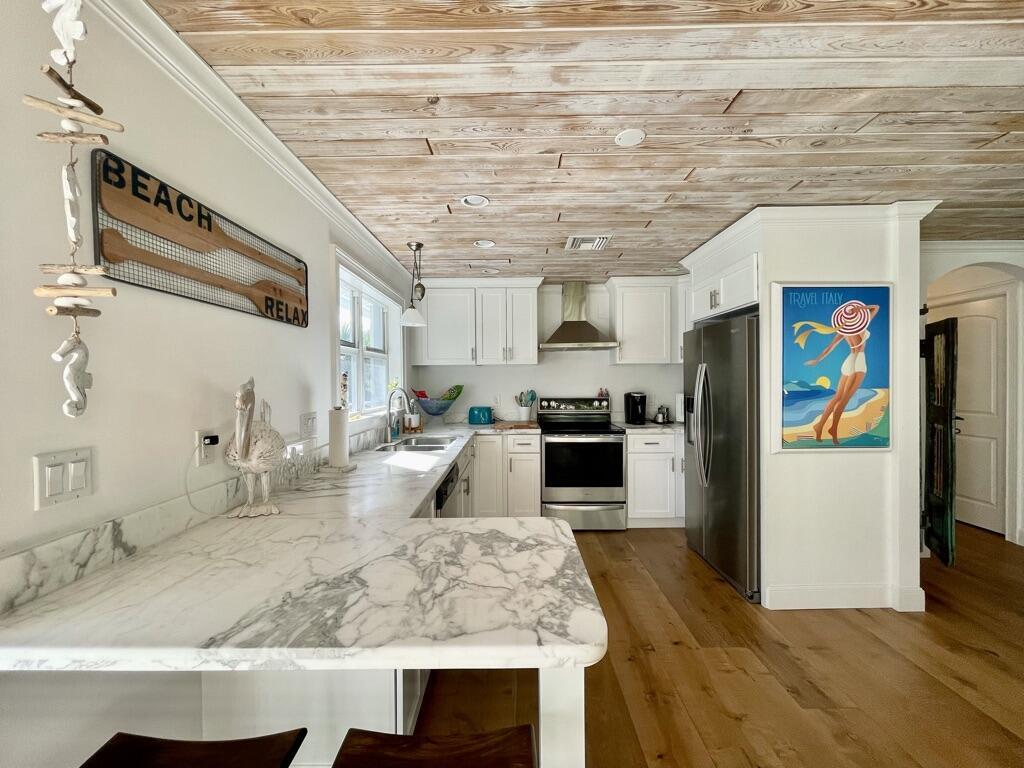 Beautiful Relaxing Beach Getaway. Newly Updated Contemporary Oasis. This private 2 Bedroom 2 Bath cottage just steps to the wide, warm, sunny beaches. Fully furnished coastal design has an open floor plan with large balcony. Real wood floors, updated bathrooms and inviting kitchen with stainless appliances and marble countertop. This turnkey retreat offers a cozy, comfortable, peaceful vacation experience. Come enjoy the sun & surf in this immaculate, light & bright property. Great Condo, perfect location!