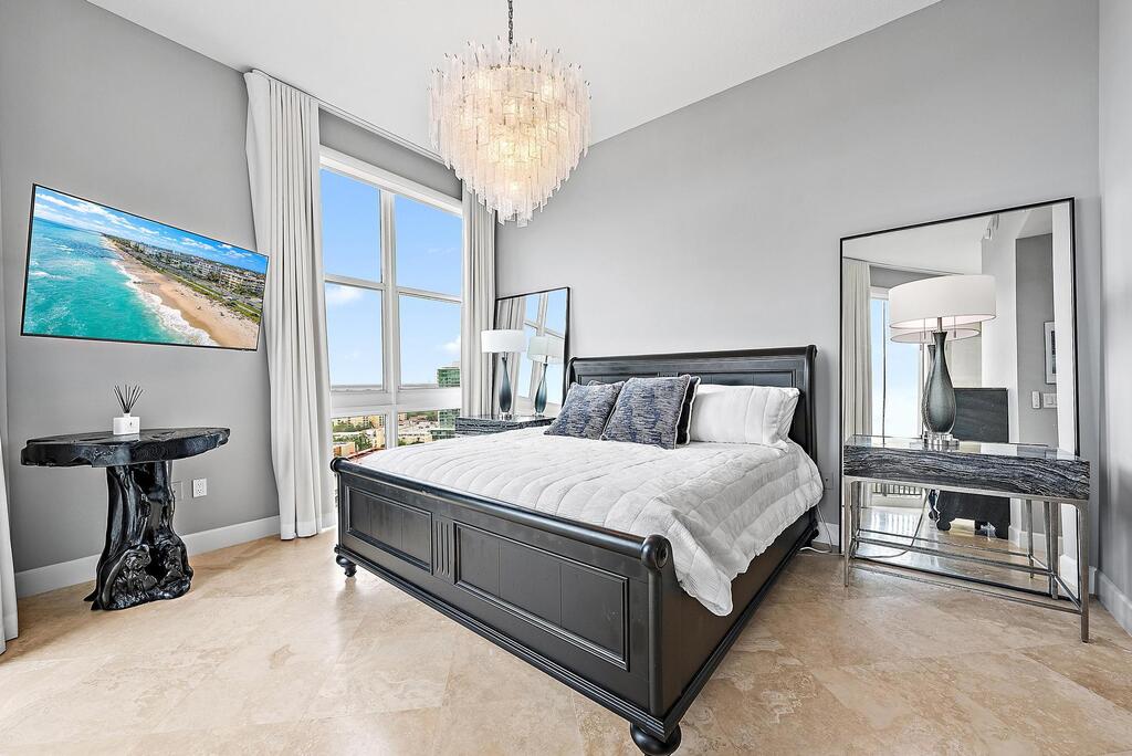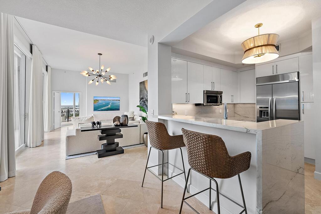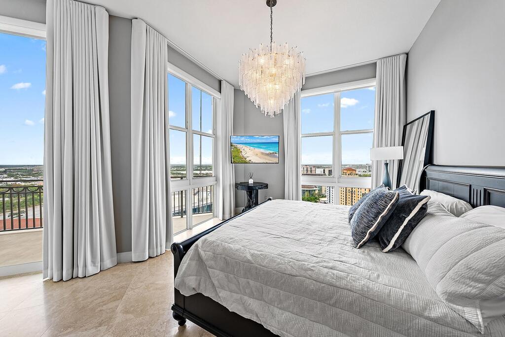 Experience elevated living in this one-of-a-kind Upper Penthouse at CityPlace South Tower. Soaring above Downtown West Palm Beach, this residence showcases sweeping panoramic city views through more than 33 floor-to-ceiling windows and soaring 11' ceilings.The chef-inspired kitchen features custom cabinetry, quartz countertops, and high-end finishes designed for both cooking and entertaining. Designer lighting, remote/Alexa-controlled motorized shades, and meticulous upgrades throughout create a refined yet comfortable atmosphere. A versatile third bedroom with a brand-new Murphy bed easily converts into a stylish guest suite or private office.