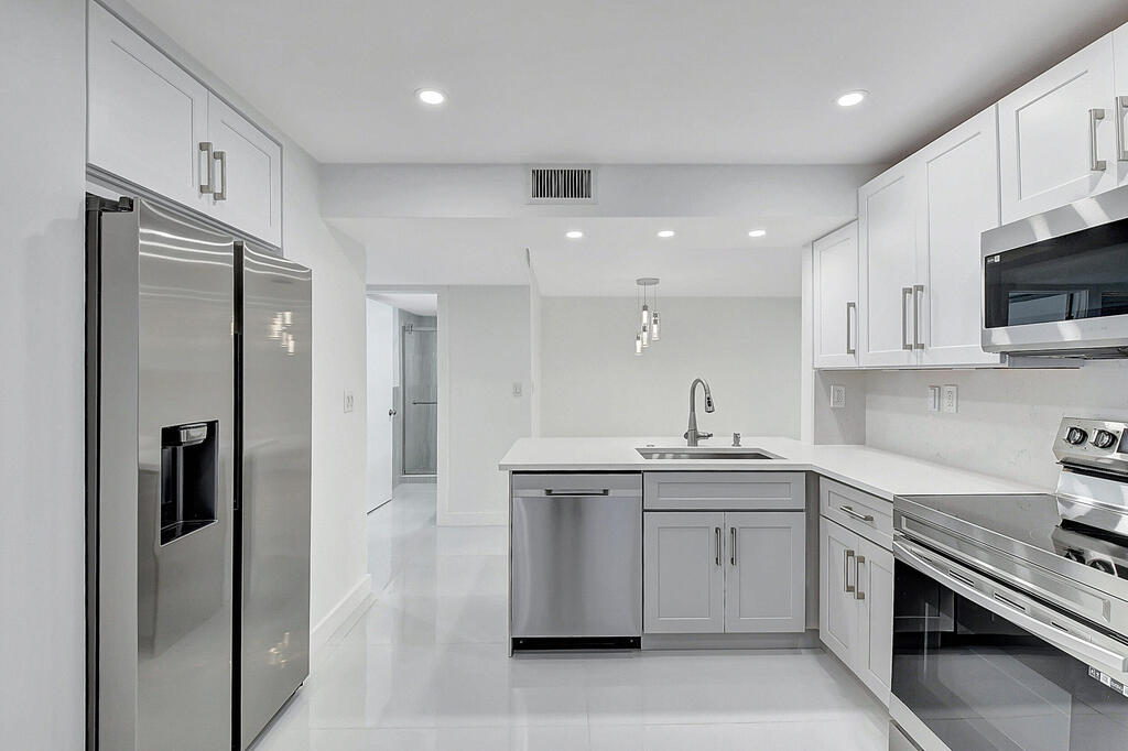 Under construction and fully remodeled, this ground-floor corner unit in the sought-after Lakes of Delray offers stunning lake views and easy access--just park and walk right in! The open-concept layout features a spacious eat-in kitchen with white cabinetry and a convenient pass-through. The owner's suite includes ample closet space and an en suite bath with a step-in shower. Enjoy breathtaking views from the screened patio. Lakes of Delray is an active 55+ community offering resort-style amenities--clubhouse, multiple pools, spas, tennis, pickleball, and endless social activities.