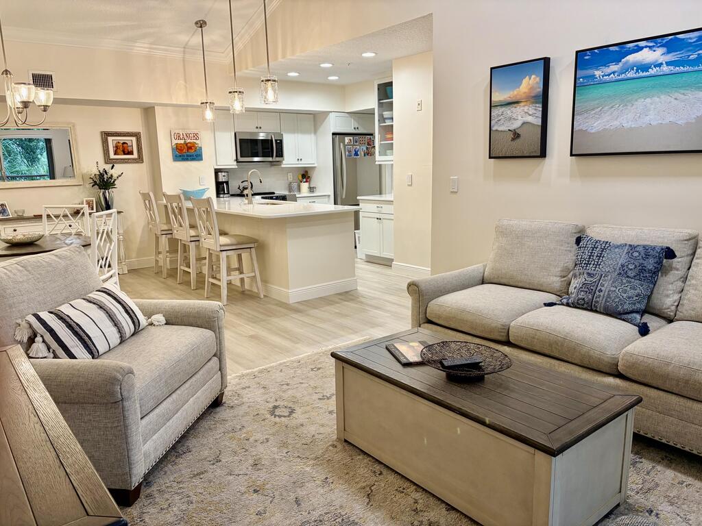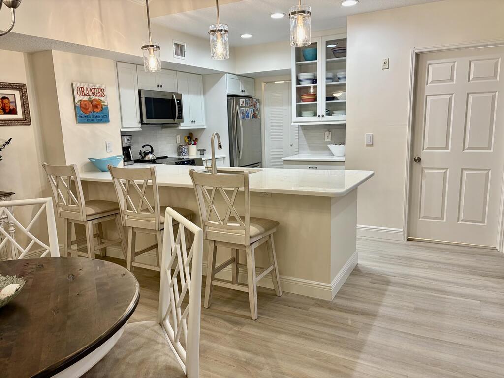 Jupiter/Tequesta Florida Seasonal Rental. Escape the cold and enjoy the Florida sunshine in this beautifully remodeled 2-bedroom, 2 bath condo in the desirable Lighthouse Cove at Tequesta community. Located on the top 3rd floor, this bright and spaciouos condo features vaulted ceilings, luxury flooring and a sophisticated designer kitchen with quartz countertops, elegant backsplash, and stainless steel appliances. The open layout leads to a screened lani overlooking the lush, park-like grounds & resort style pool, perfect for relaxing mornings or evening sunsets.Additional features include laundry in unit, 2 assigned parking spaces, beautifully furnished, turnkey ready, 90 day min. Amenities also include tennis court, fitness room, business center, billiards, racquetball court.