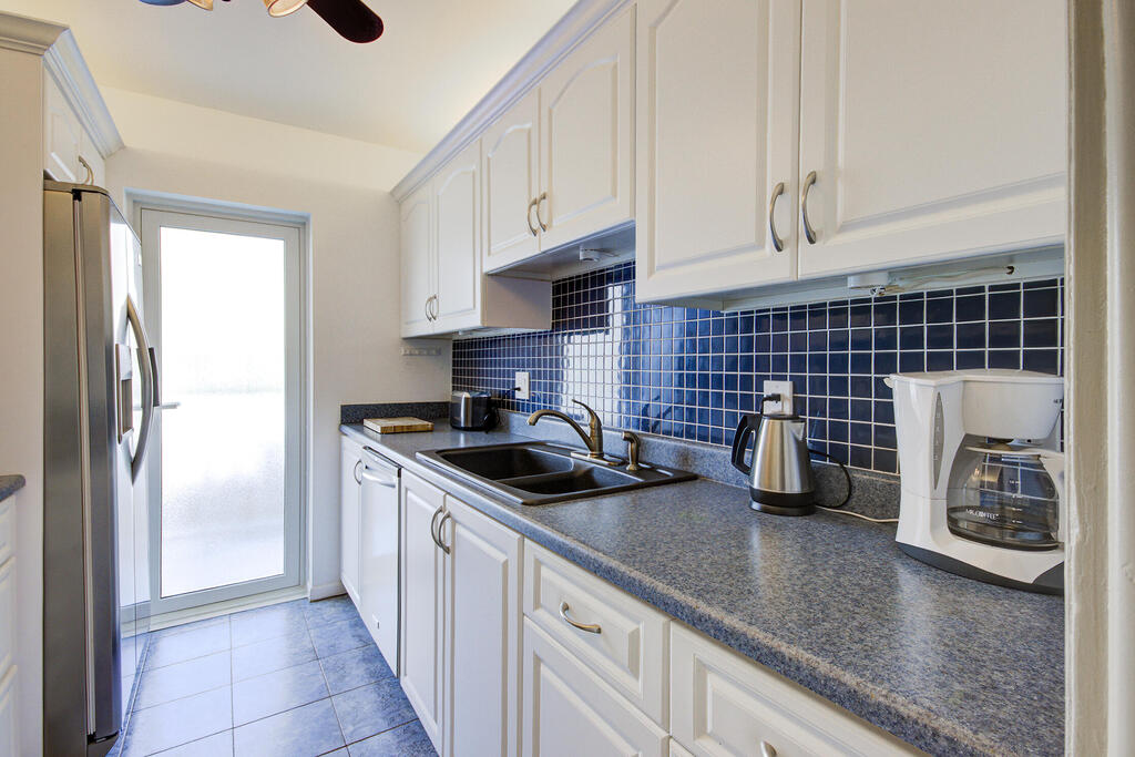 Escape to this bright, beautiful, and fully appointed waterfront condo--your perfect seasonal retreat.The open-concept living area offers comfortable seating and a serene, coastal-inspired decor with blue accents, leading to a balcony with stunning canal views. The elegant dining area is set beneath a tiered crystal chandelier, featuring a modern white table and a dramatic mirrored wall that enhances the light and space. The adjacent galley kitchen boasts chic white cabinetry, stainless steel appliances, and a striking navy blue tiled backsplash contrasted by blue-gray countertops.This condo offers a clean, sophisticated, and efficient base for an ideal Florida getaway. Enjoy the best of the waterfront lifestyle with the added convenience of a carport.