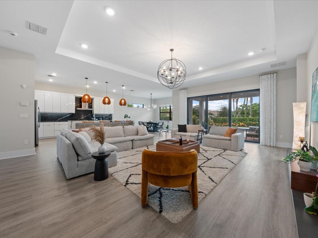 STUNNING CORNER LOT ESTATE WITH WATER VIEWS, LUXURY UPGRADES, CUSTOM POOL, FURNISHED AS SHOWN, GREAT RESORT-STYLE AMENITIES, 55+ COMMUNITY 3 BEDROOMS PLUS A DEN, GOURMET KITCHEN.