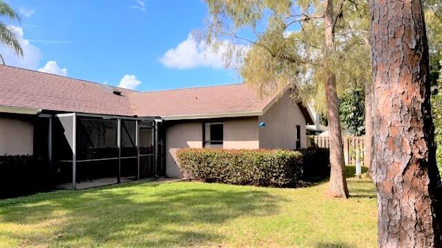 - Exterior FeaturesAuto Sprinkler, Covered Patio, Fence and Screened Patio