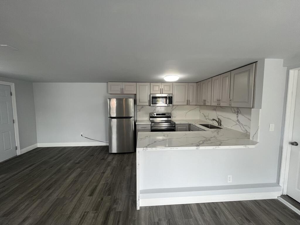Large modern remodeled studio available now! Annual unfurnished rental. Completely remodeled and stunning open floor plan with modern kitchen, appliances, floors, a/c and much more! Located in Downtown Deerfield Beach in The Cove walking distance to the beach, pier, LA fitness, Publix, restaurants, bars, retail shopping and much more! Open floor plan with full kitchen, bathroom, walk-in closet, and open patio area. Plank style floors! Available for immediate move-in! Plenty of natural light. Lots of storage space. Newer a/c unit. Laundry/dry cleaners located walking distance from property. No HOA. Quick Approvals!