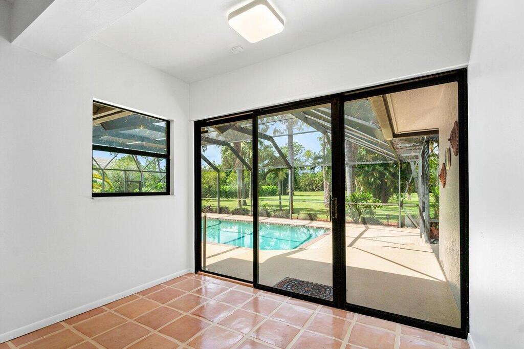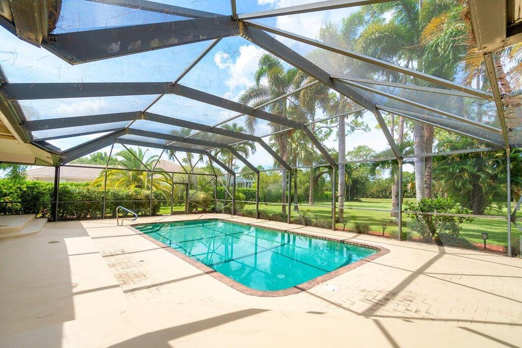 CLEAN, CLEAN, CLEAN!! One of a kind! 3 bedrooms PLUS a den! St. Andrews of Sherbrooke is a wonderful community with individual style homes and 1-acre lots. Great opportunity to enjoy a beautiful home with a private pool and a sprawling yard! Almost 2500 sq ft with spectacular, backyard and mature trees. Screen enclosed patio and pool with covered and open areas. Very well maintained, new flooring in the primary suite (no carpet), new roof. Eat in kitchen nook, laundry room inside and 2 car garage. Close to shopping, schools and highways. Downtown Lake Worth, Delray Marketplace and Wellington's Equestrian activities, all just a short drive. Landlord will maintain the yard care, pool, alarm system and septic system.