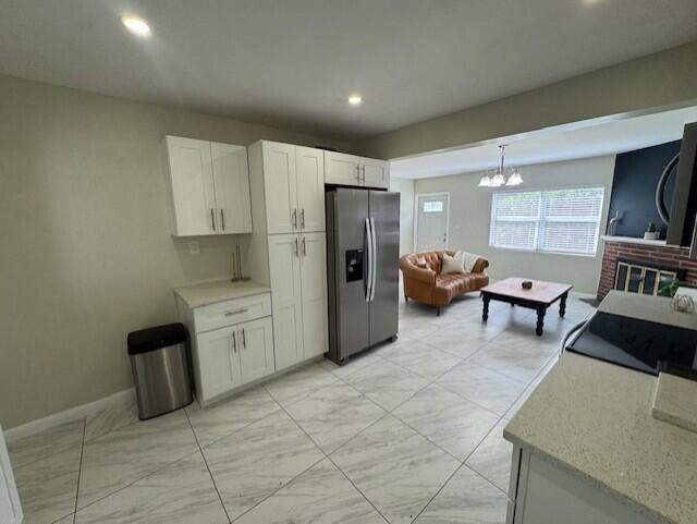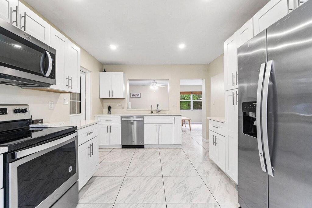 Beautifully Remodeled 3-bedroom, 2-bath home in a very desirable location close to Juno Beach and the beautiful white sandy beach! Move-in-ready property features include freshly painted, updated Kitchen with White Shaler Cabinets and Stainless Appliances, Quartz Countertop. Bathrooms all have designer finishes. Large Bedrooms, Living Room with Fireplace. Family Room and Dining Areas. This home has an open-concept layout, and modern comforts throughout. Water filtration system, impact windows & newer 2022 roof. Large Screened Porch. Large Side Yard and Smaller fenced in Backyard area! lots of Charm. (Back Detached Garage/Storage Area not for use). Great Location near shopping and restaurants with easy access to the highways, beach and golf! A Must See!