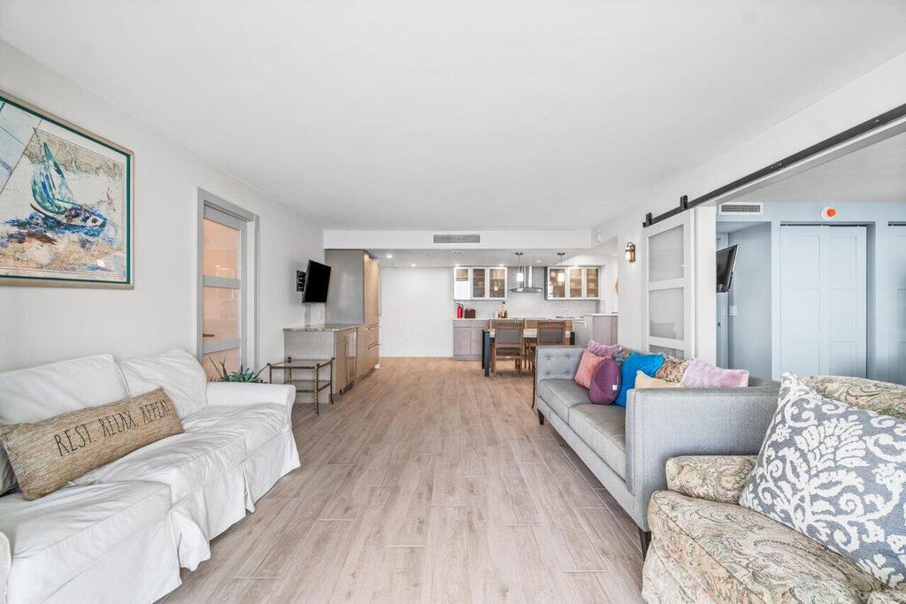 *Easy to see!* BREATHTAKING, direct ocean + intracoastal views in this east facing Penthouse at the Palm Beach House. Feel like you're on vacation every day in this 2 bedroom (king, queen, single AND sleeper couch), 2 bathrooms (one w/ aJacuzzi tub) furnished condo w/ 1 assigned COVERED parking space near the elevator. Washer/Dryer in unit. This is the only building w/ sandy beach, pier for fishing, billiards room + tiki hut for afternoon relaxing. Centrally located, you're minutes to dining + supermarkets on Palm Beach, Downtown West Palm Beach + Northwood Village. You're also close to Phil Foster park for world class diving + golf courses. All you need is your suitcase + toothbrush + you can call this gorgeous condo ''HOME'.. (PS don't forget to wave good morning to Sylvester Stallone!)