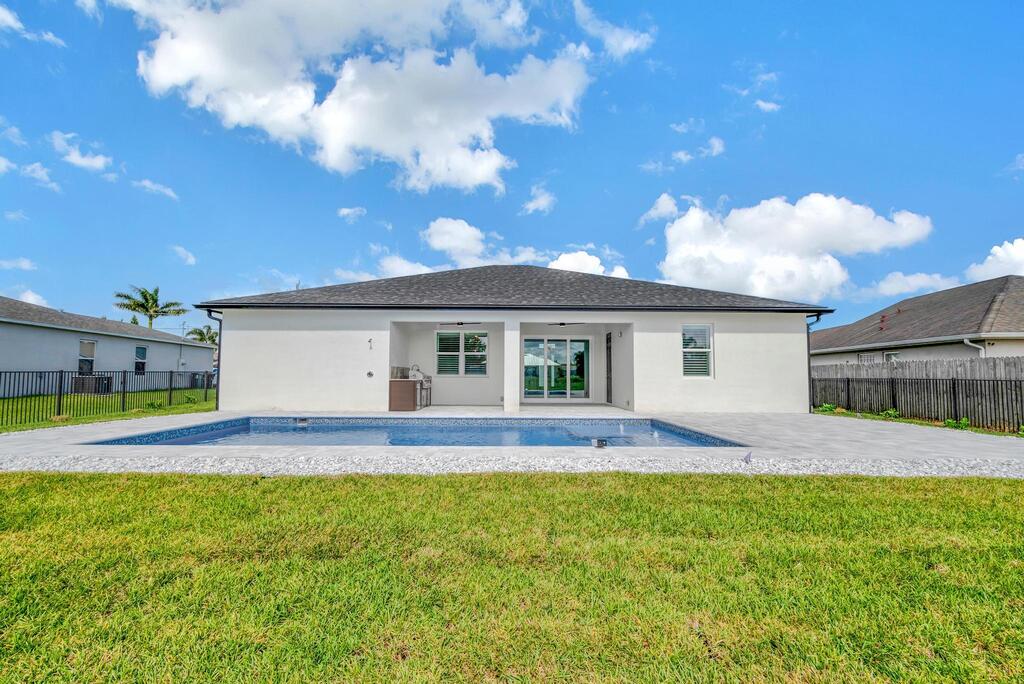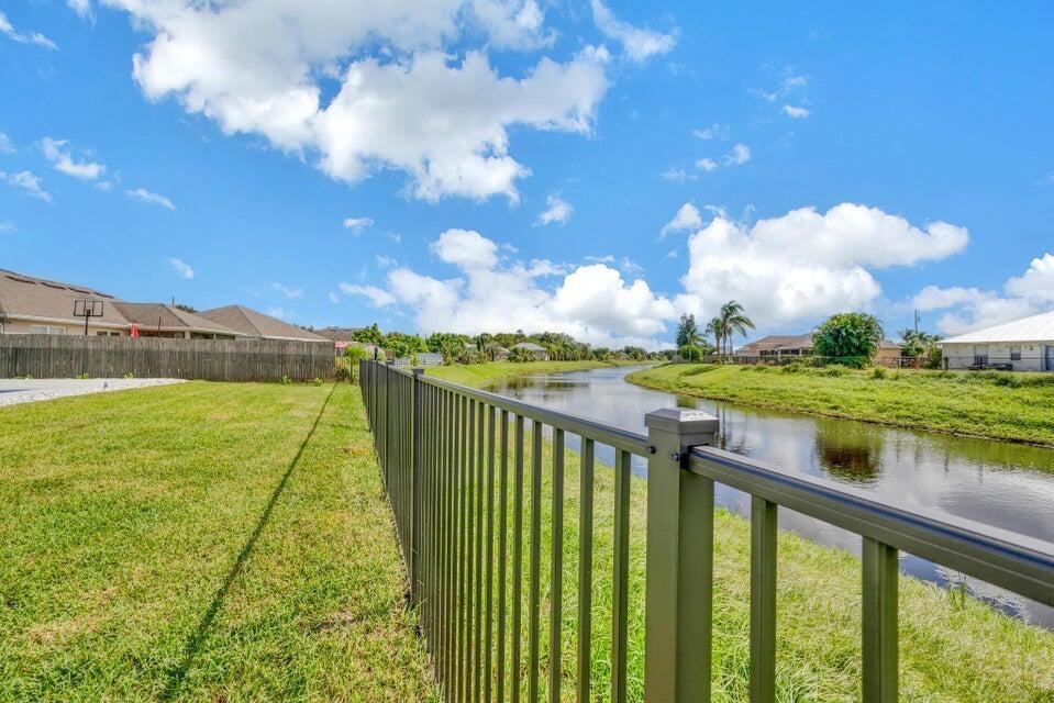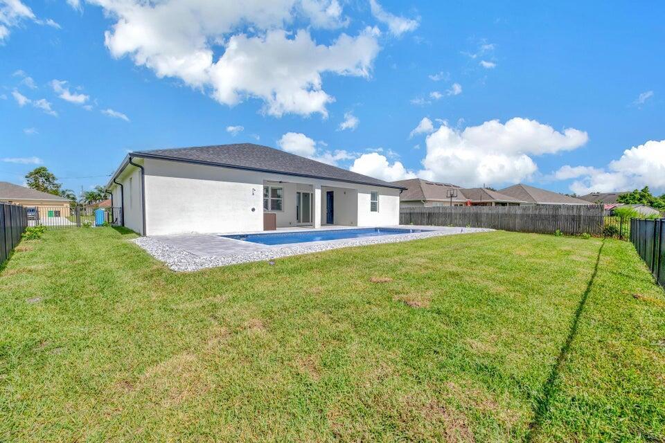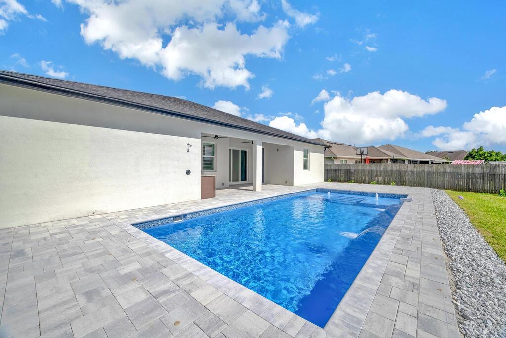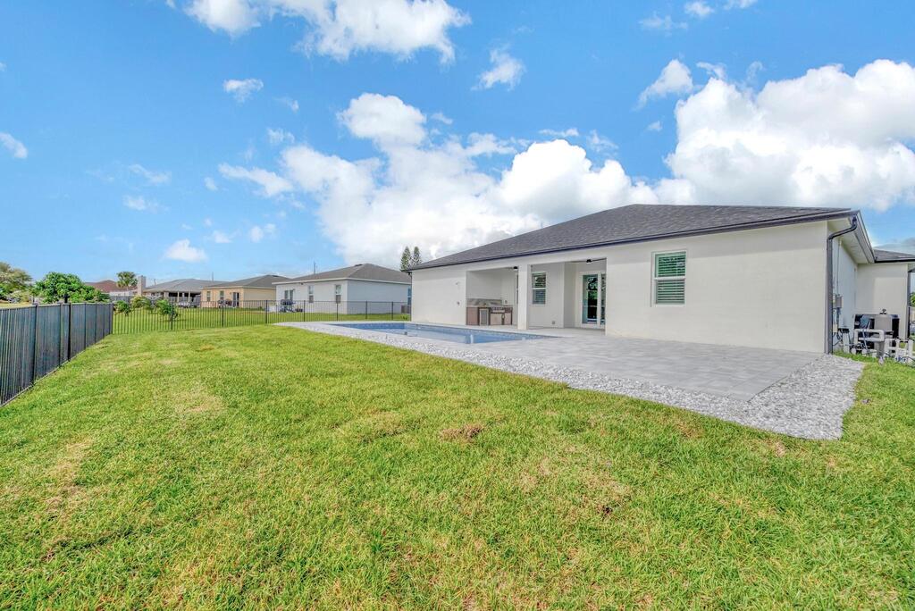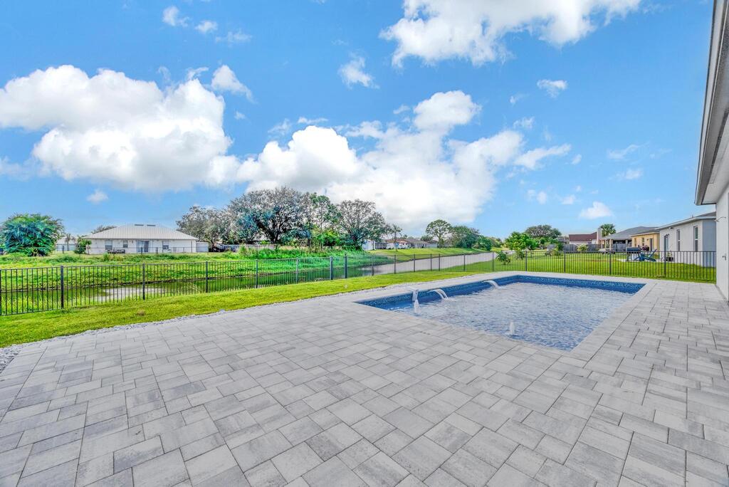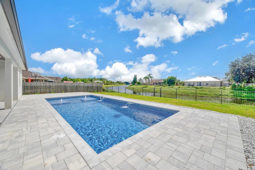 Spectacular BRAND NEW POOL HOME in prime location on the Treasure Coast ! 4 bedroom + DEN/ 3 bath / 2 car garage and BRAND NEW HEATED NEW POOL . This house features all bells and whistles: wood like tile, gourmet kitchen, OPEN PLAN LIVING AREA, TWO MASTER SUITES, 2 car garage, outdoor kitchen, salt water heated POOL ,SUMMER KITCHEN and FENCE! Enjoy Florida outdoor living in this amazing pool home overlooking the canal. IMPACT GLASS WINDOWS THROUGHOUT! Minutes to TRADITION & MET STADIUM .Easy access to main roads, short drive to the beach. Lawn care and irrigation and indoor PEST control included in the rent price. Probably one of the nicest homes in the area with no HOA. Note this is UNFURNISHED rental . Also available for FURNISHED seasonal rental, min 3 months @7.5k a month in season