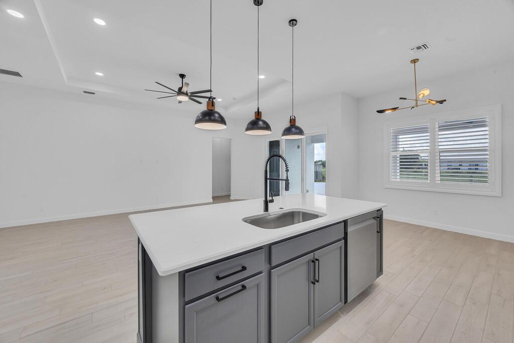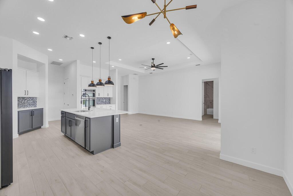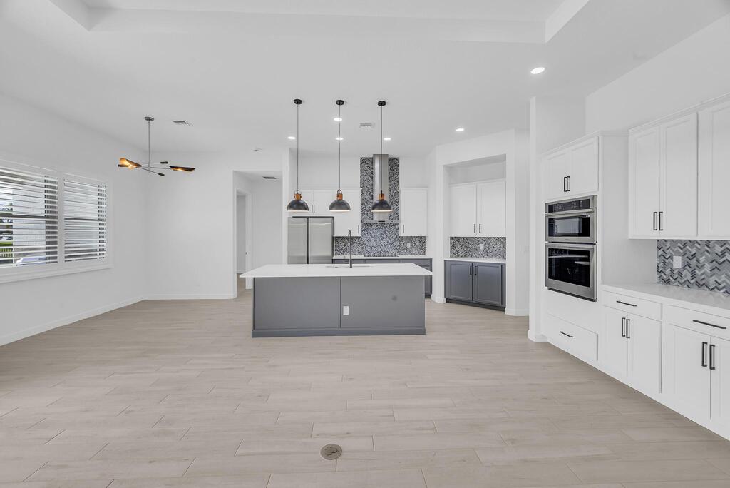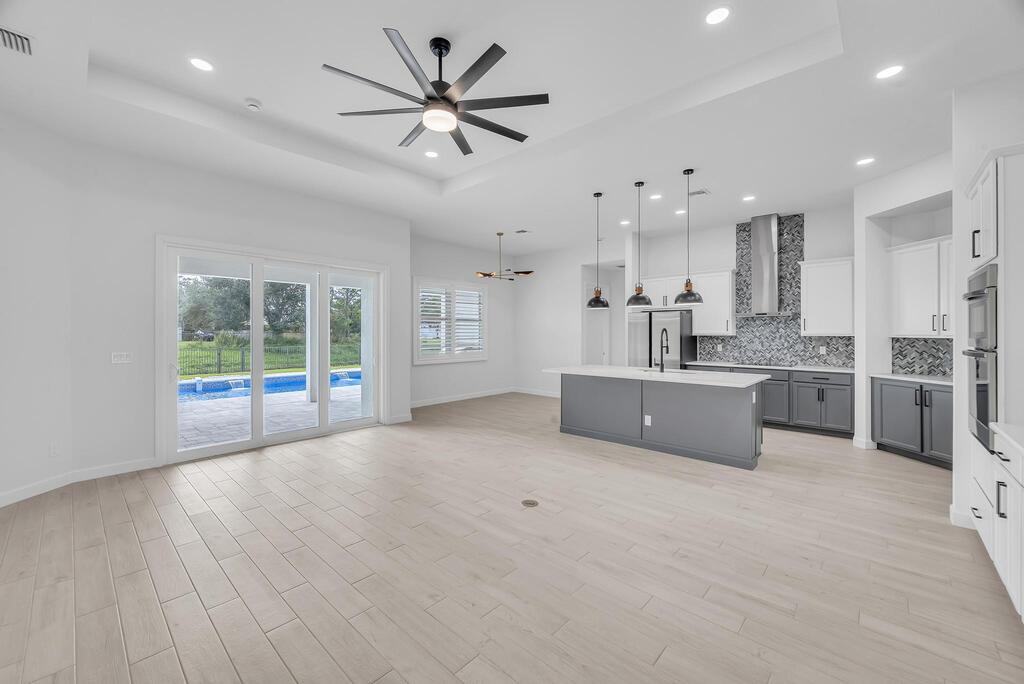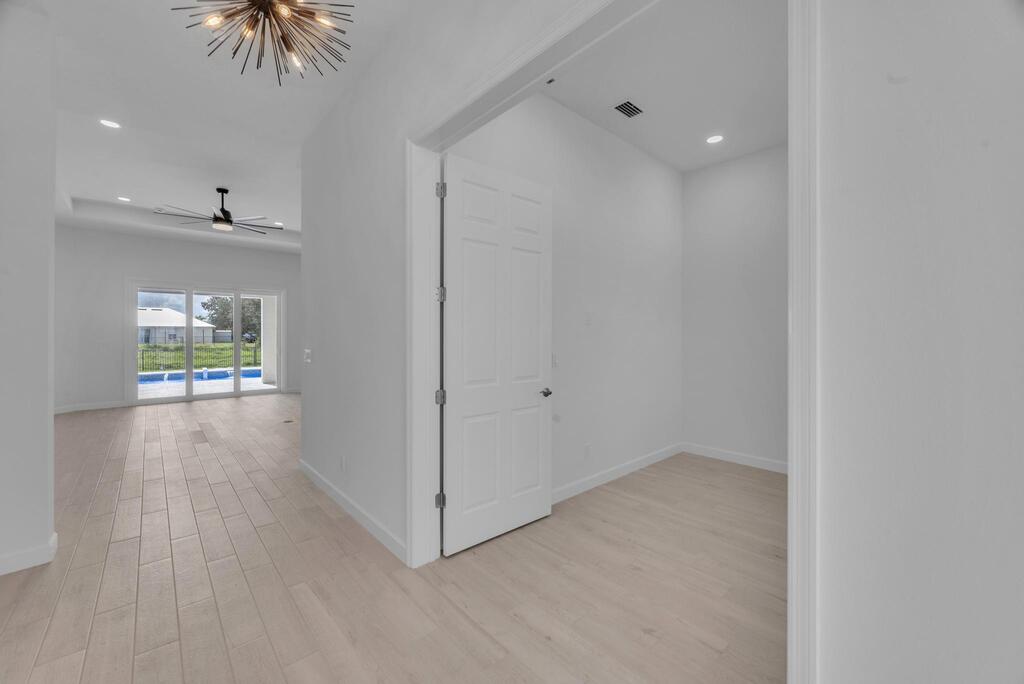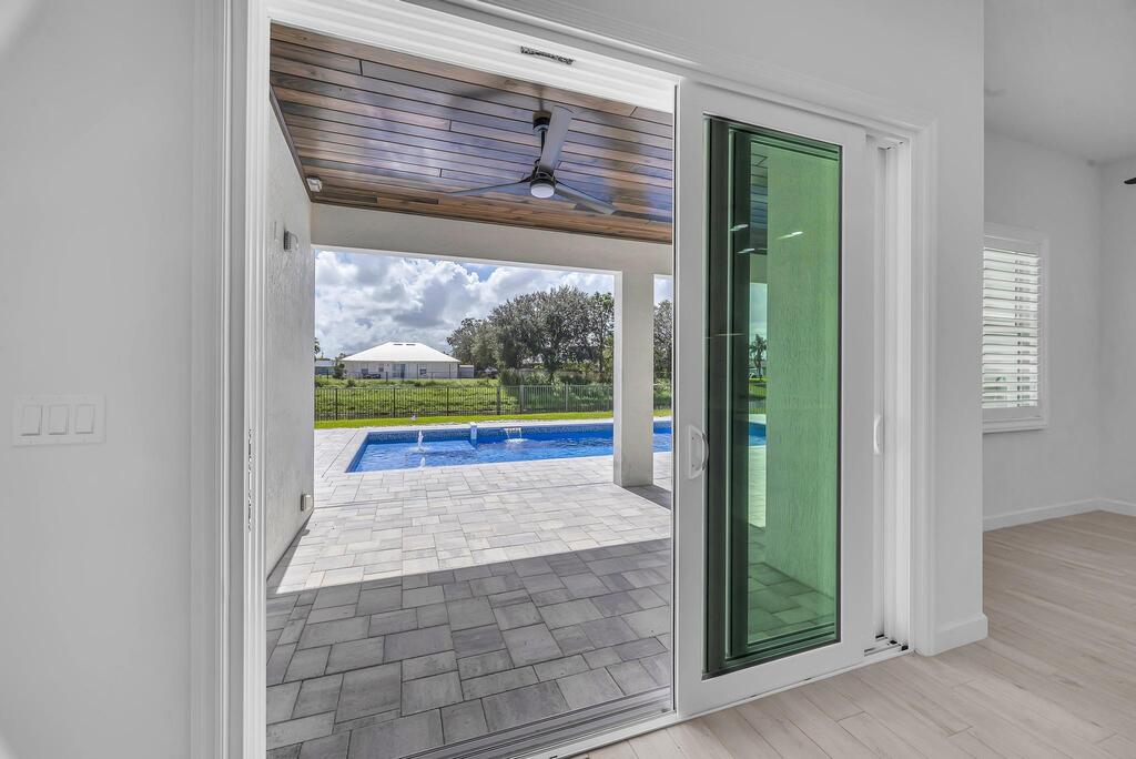 Spectacular BRAND NEW POOL HOME in prime location on the Treasure Coast ! 4 bedroom + DEN/ 3 bath / 2 car garage and BRAND NEW HEATED NEW POOL . This house features all bells and whistles: wood like tile, gourmet kitchen, OPEN PLAN LIVING AREA, TWO MASTER SUITES, 2 car garage, outdoor kitchen, salt water heated POOL ,SUMMER KITCHEN and FENCE! Enjoy Florida outdoor living in this amazing pool home overlooking the canal. IMPACT GLASS WINDOWS THROUGHOUT! Minutes to TRADITION & MET STADIUM .Easy access to main roads, short drive to the beach. Lawn care and irrigation and indoor PEST control included in the rent price. Probably one of the nicest homes in the area with no HOA. Note this is UNFURNISHED rental . Also available for FURNISHED seasonal rental, min 3 months @7.5k a month in season