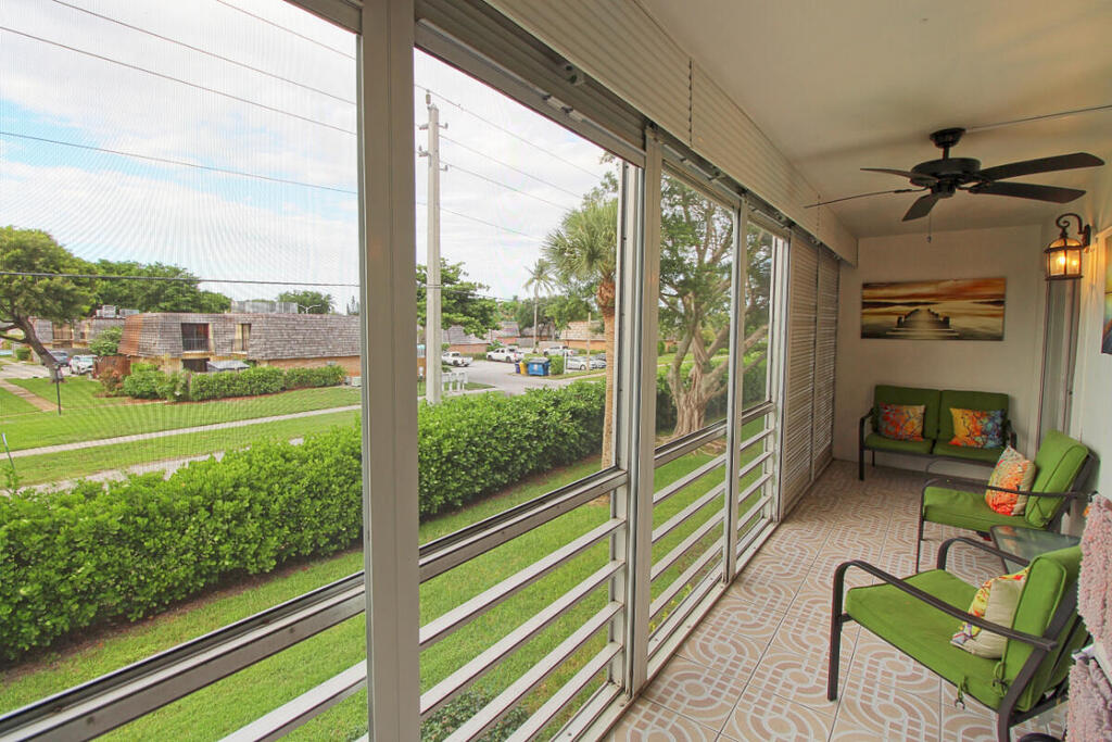 - Exterior FeaturesCovered Balcony, Screened Balcony and Shutters
