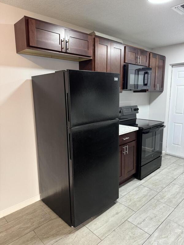 Recently renovated duplex unit, freshly painted, new appliances, kitchen cabinets, bathroom vanity, tiled floors, tiled shower, central air condition and heat. Conrete finish parking area.
