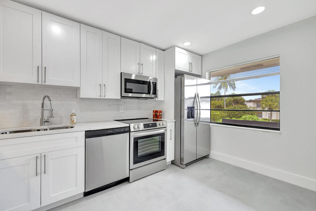 TOTALLY RENOVATED 2BR/2BA WITH OPEN CONCEPT & BEAUTIFUL VIEWS!Experience luxury and comfort in this fully renovated apartment featuring an open-concept layout filled with natural light. Upgrades include Calacatta Quartz countertops, stainless steel appliances, and custom cabinetry. Enjoy year-round comfort with a new 2023 A/C and 2024 water heater. Relax on your private balcony with serene views and gentle breezes. Located in the desirable Greens of Boca Lago, a 55+ community offering a peaceful lifestyle close to shopping, dining, and major roads.Don't miss this opportunity -- schedule your private tour today and experience luxury living at its finest!(Some photos are virtually staged.)