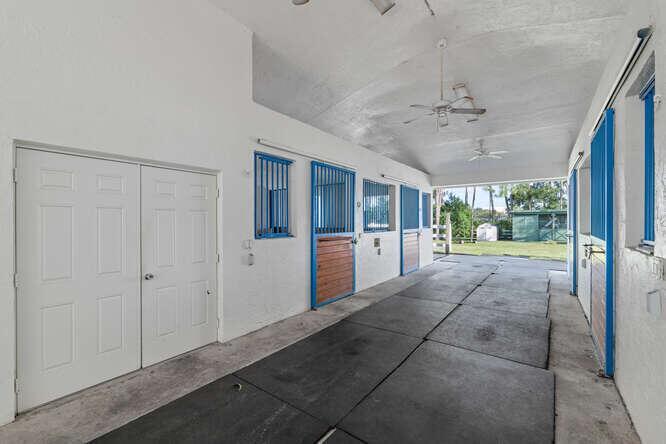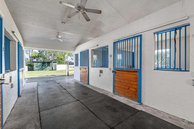 - Equestrian FeaturesBridle Path/Trails, Center Aisle, Grooms Quarters, Lounge, Owners Apartment, Paddocks, Stable and Water & Electric