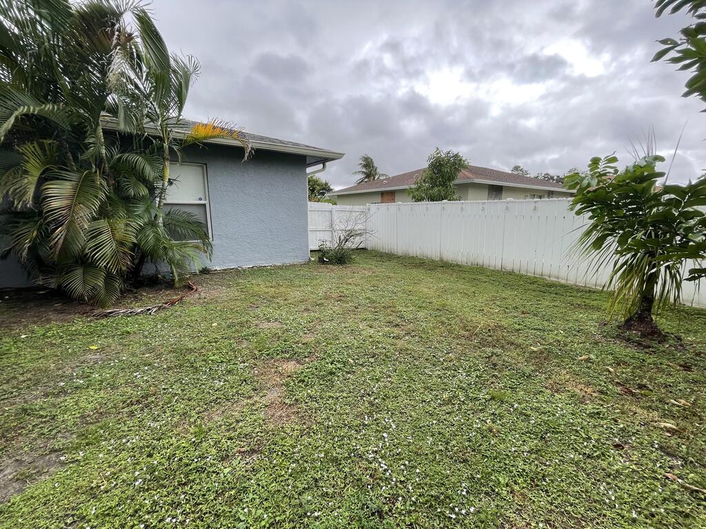 Welcome to this one-of-a-kind home in Central Port St Lucie! With its bright and spacious floor plan, this 3-bedroom, 2-bathroom residence offers a truly exceptional living experience. Revel in the elegance of tile flooring throughout, providing both style and easy maintenance. Each bedroom features walk-in closets, ensuring ample storage space for every member of the household. The master suite is a true sanctuary, boasting his and her walk-in closets, a separate shower and tub, and a water closet for added privacy and convenience. Step outside to discover the amazing backyard retreat! A huge screened deck, complete with lights and electric connections, invites you to relax and entertain in style.