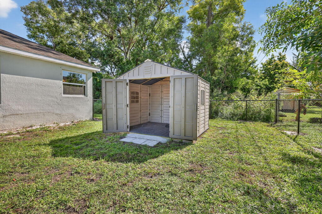- Exterior FeaturesCovered Patio, Fenced Yard and Shed