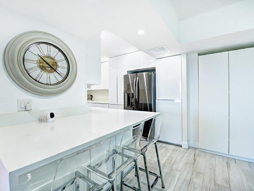Very Chic spacious 2 BR, 2 full BA condo end unit on the 6th floor w/floor to ceiling sliders to enjoy the direct intracoastal views and even a peek at the ocean! Covered parking,YES! Water views from EVERY room! Nice bright high end remodel. Gorgeous quartz kitchen with stainless appliances. Enjoy the boats and sunsets in this unit that has white porcelain tile flooring thru-out the 1,550 sq. ft. of living space.The Patrician is full amenity newly renovated and modernized oceanfront building w/ 24hr door person, resort style pool and BBQ on the ocean deck, gym, club room and more! Live as if you are on vacation all the time. Low carrying costs for tenants! Internet, wifi, basic cable, water and hot water are all included and there is a main chiller on the roof to keep A/C costs very low.
