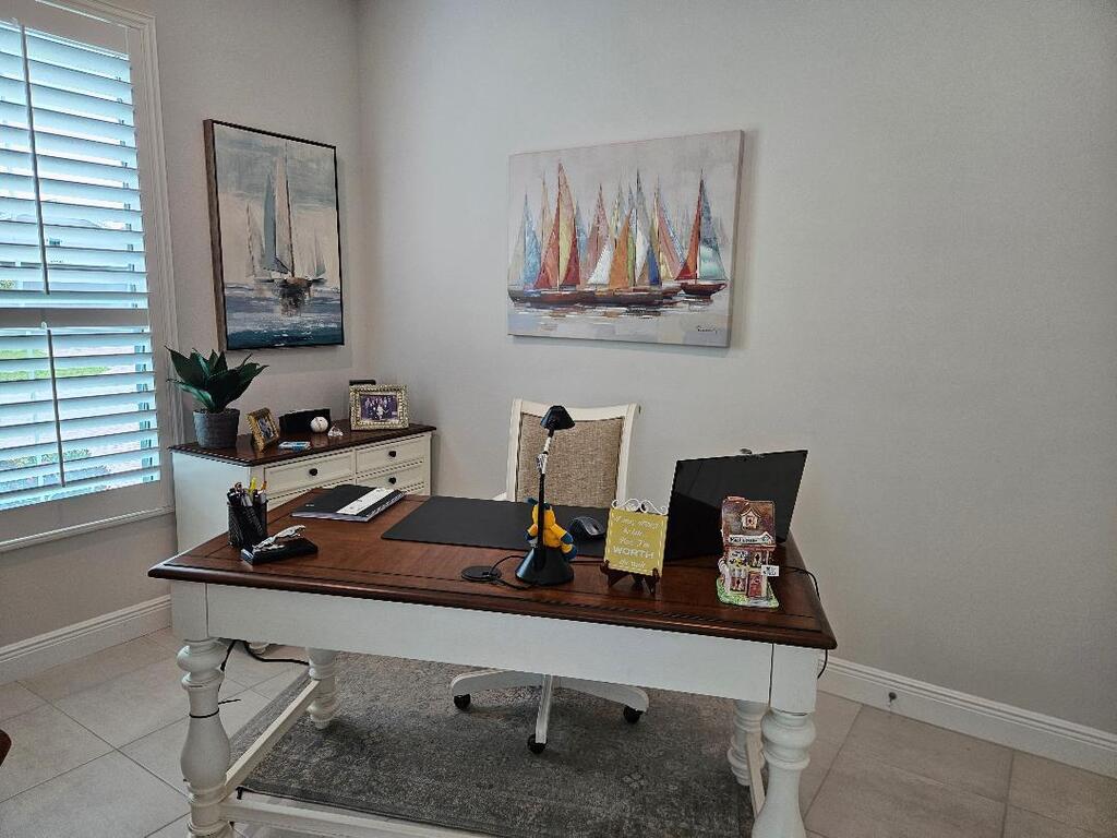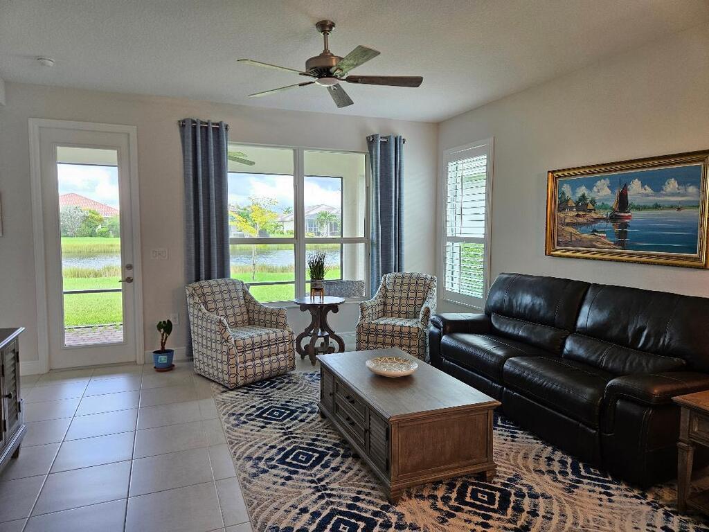 This is a must see lakefront home in exceptional condition (only used 6 months a year by owner). Two bedrooms PLUS separate office/bonus room located in the gated community of Vitalia in Traditions! Beautiful lakefront location looking over a peaceful flowing lake and Luxury homes across water along with a screened/covered 18.4 x 9.4 Liana! Enjoy tile floors through-out the home (other then carpeted bedrooms), beautiful kitchen cabinetry with pull outs, Gas Range and SS appliances & stylish Plantation Shutters & handsome ceiling fans. Separate Laundry-room with grey high end washer/dryer, sink & cabinetry. Rent includes Internet and Cable television, Lawn Care, Alarm Monitoring, & use of all club house facilities! BEAUTIFULLY remodeled club house includes state of art ... (continue