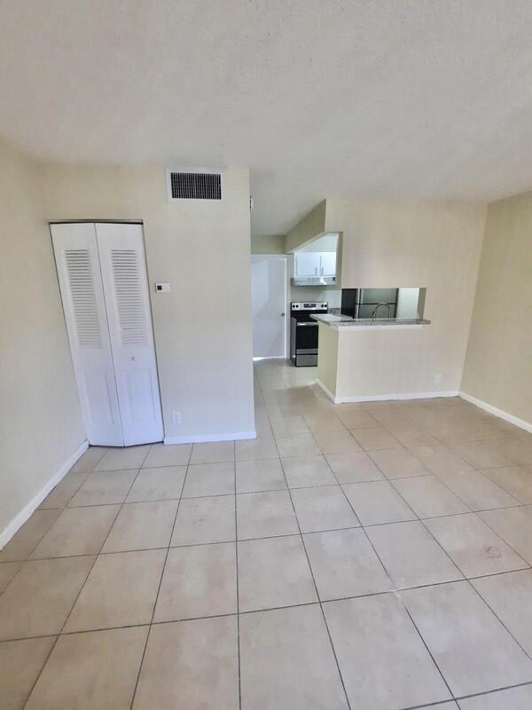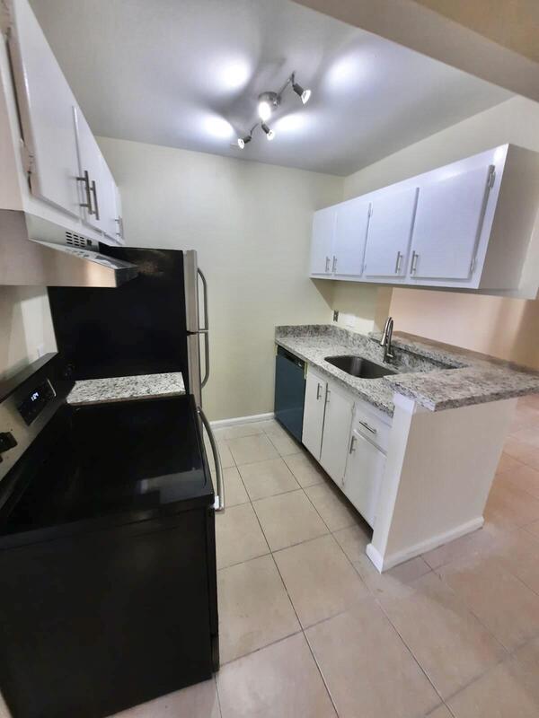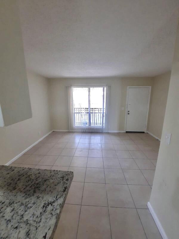 Cozy and bright third floor condo 1bedroom 1bath-Spacious with separate dinning area. Updated kitchen -Granite Countertop- Stainless Steel Appliances- Laundry Facilities. Great community close to I-95. Palm Beach Outlets. No pets allowed by Association. and WATER is included in the rent !
