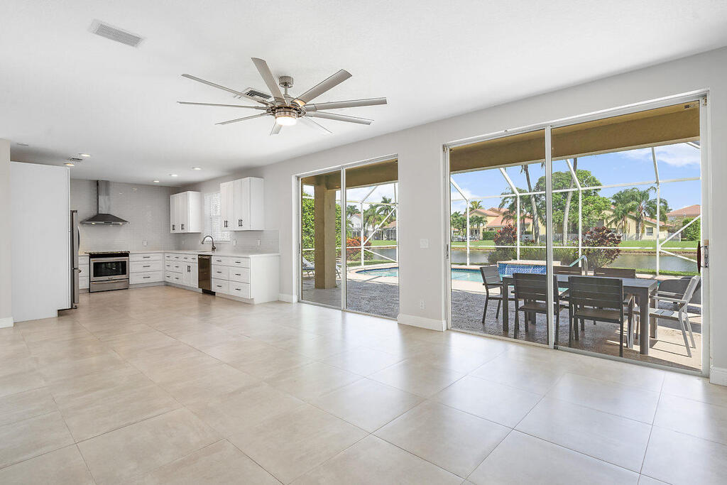 Beautifully renovated, unfurnished contemporary 4BR/3BA, 3 car garage, 2 story pool home on water in 24 hour man gated Boca Raton community. This light and bright home features lots of windows, NO carpeting, open floor plan and lovely water views! Modern kitchen with white wood shaker style cabinets, french door fridge, quartz counters, and is open to large family room and overlooks gorgeous pool (newly redone) and yard. Oversized master BR with huge closets, private balcony and sitting area and 3 generous sized rooms upstairs. Ceiling fans in all bedrooms. Pets considered on case by case basis. Fabulous all age community has a pool, gym, clubhouse, tennis, billiards room. Cable, lawn and pool care included.