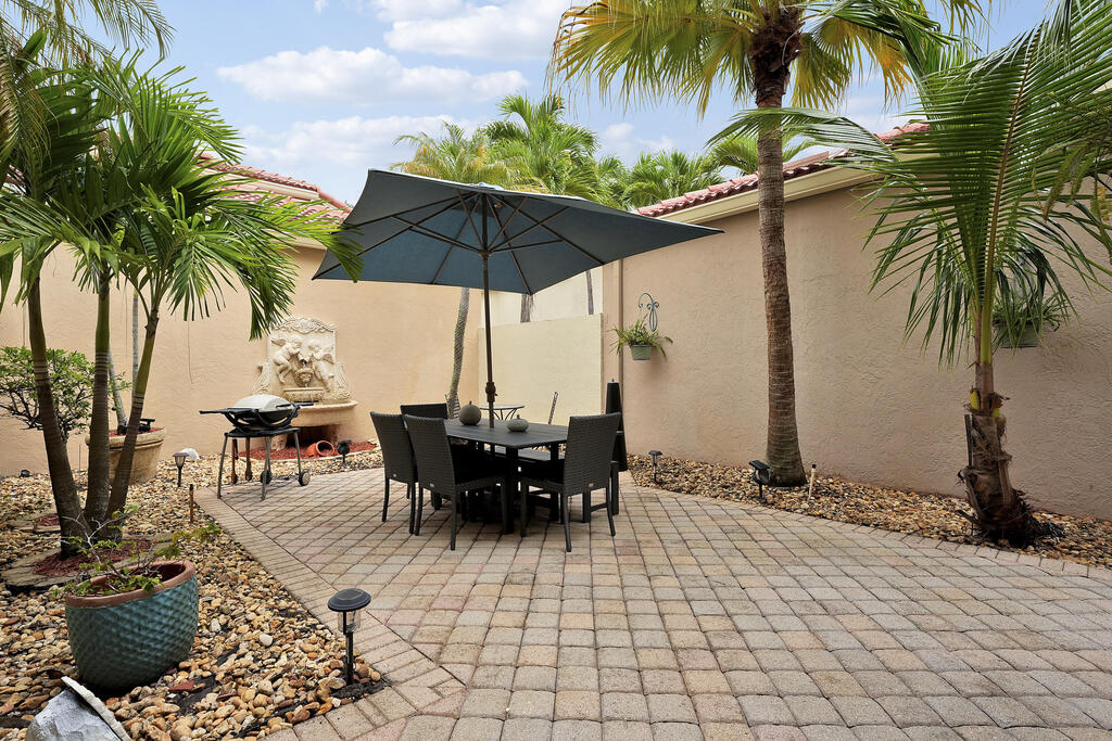 Drive down the cobblestone streets of PGA National's Villa D'Este community, where beautiful oak trees canopy over. This 3-bedroom, 2.5-bathroom, 2car garage home features a kitchen with granite countertops, stainless steel appliances, this home is perfect for cooking and entertaining. The home also includes vaulted ceilings, a split bedroom floor plan, and a walk-in closet in the master suite. Enjoy the tranquility of your private, oversized courtyard! or take a short walk to the beautiful community pool that will make you feel you are vacationing in Italy. PGA is a gated community and located close to the turnpike, I95 and more restaurants and shopping than you can imagine! Making it the perfect seasonal property to call your Florida, vacation home!