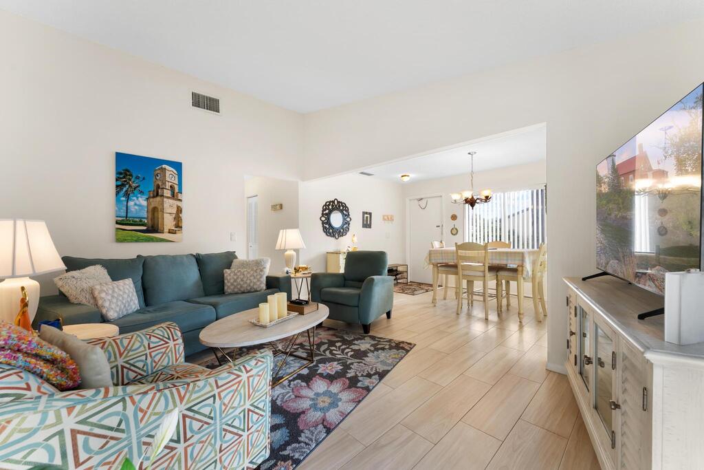 Fully furnished and turn-key 2BD/1BA condo with 1-car garage in The Forest Condominiums. Enjoy an open floor plan with ceramic tile throughout, a well-equipped kitchen, an in-unit washer/dryer, and a private patio complete with a BBQ grill. Rent includes cable, water, internet, lawn care, trash, and pest control--hassle-free living at its best. The pet-friendly community offers a pool, tennis and basketball courts, playground, and ample green space. Located off Southern Blvd, between I-95 and the Turnpike, close to shopping, dining, and beaches. One assigned space plus guest parking included. Don't miss this rare opportunity!