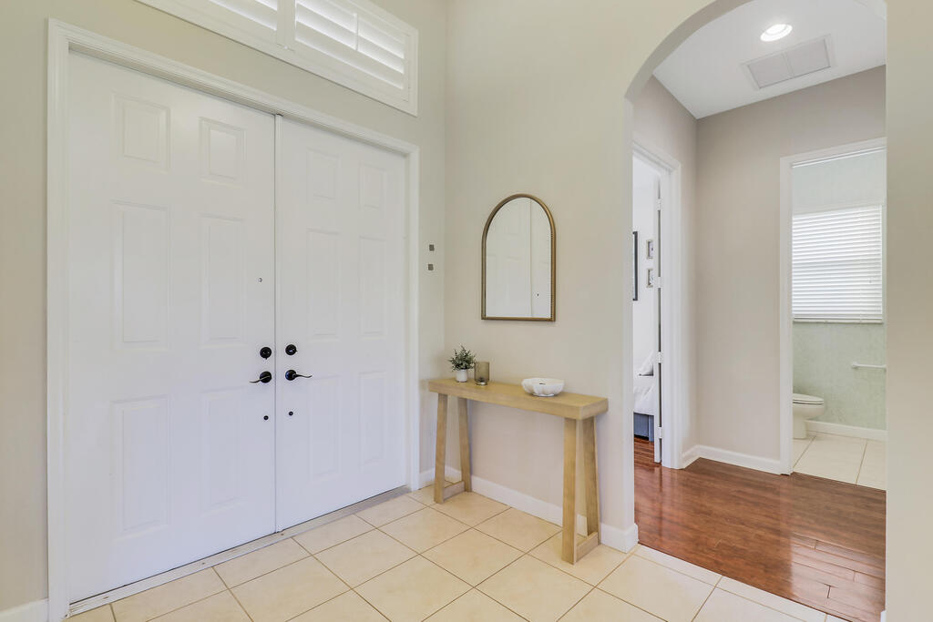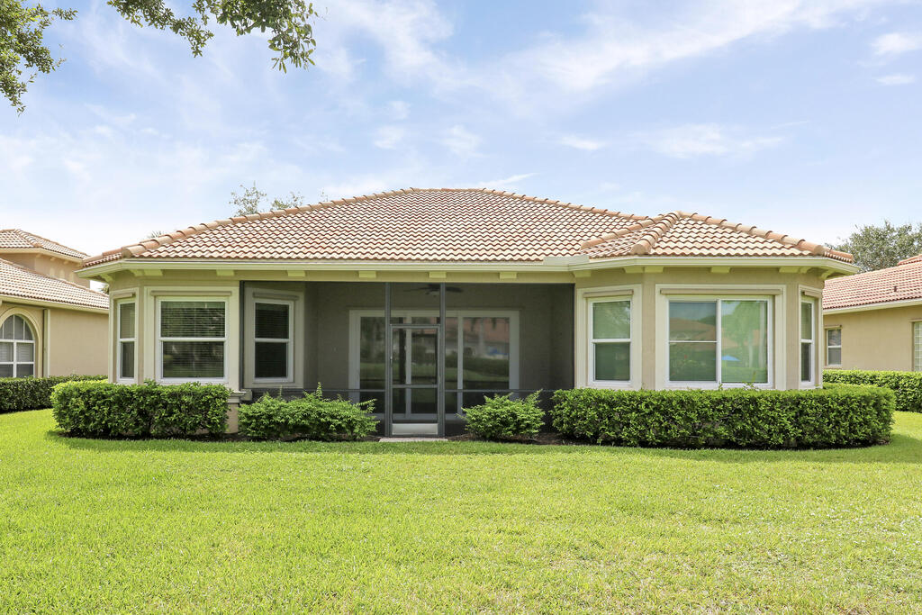 LAKESIDE LOCATION in PGA Village! This lovely 3BDRM/2.5BA/2CG home is being offered fully furnished/turnkey for an annual lease. A few of the many features of this special home include spacious floorplan, solid surface flooring throughout, kitchen w/ white cabinets, granite counters, SS appliances and charming breakfast nook overlooking the lake! Primary Suite also has lake views and a private ensuite w/ dual vanities, walk-in shower & soaker tub. Two walk-in closets! Two additional bedrooms share a full guest bath off the hall plus a half bath! Enjoy your morning coffee while taking in the serene lake views from the covered/screened lanai! Walking distance to the 'Island Club' featuring resort style pool, fitness facility, games room, pickleball, tennis and much more! Call today!