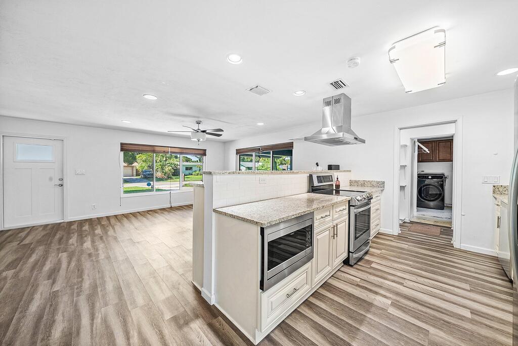 Discover the perfect blend of style and comfort in this beautifully renovated 3-bedroom, 1.5-bath home located in the heart of Jupiter. Every detail has been thoughtfully updated -- from the modern finishes and sleek flooring to the impact windows offering peace of mind and energy efficiency.Enjoy an open, functional floor plan that flows effortlessly between living spaces, creating the perfect setting for both relaxation and entertaining. Step outside to a huge fenced backyard, ideal for pets, family gatherings, or simply soaking up the Florida sunshine. Lawn care included and super low electric bill!!!