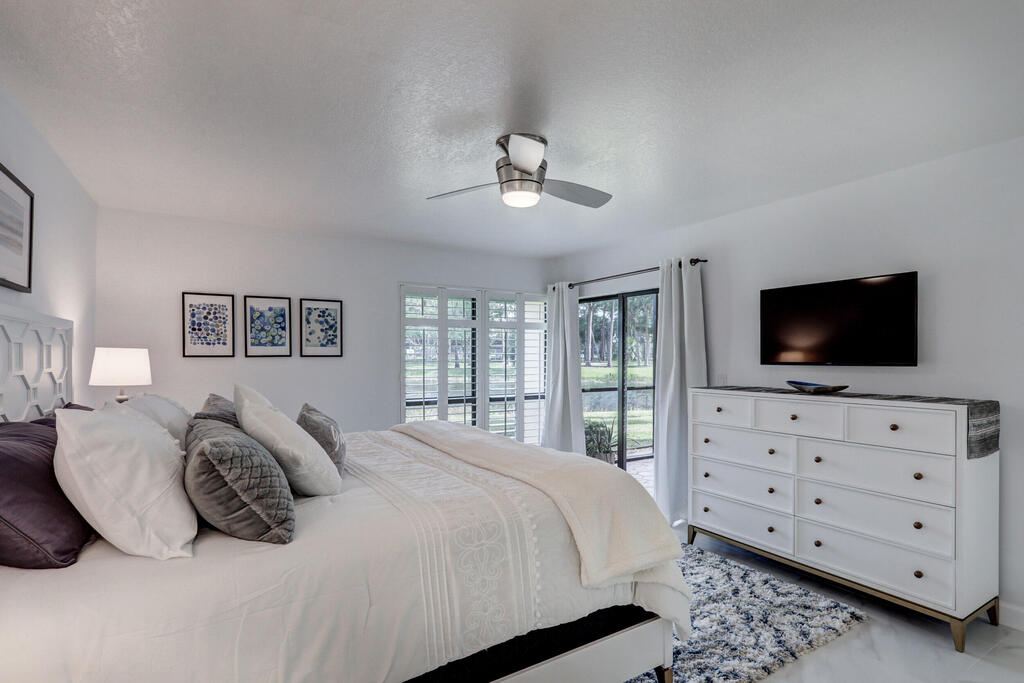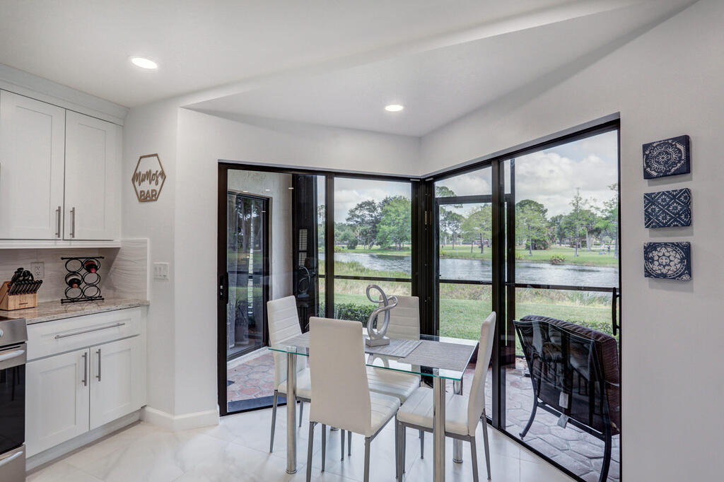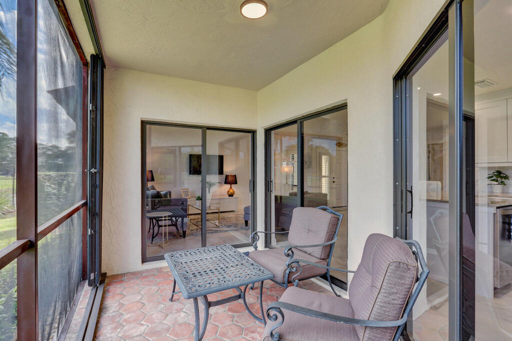 Step into refined comfort with this beautifully furnished and fully renovated 2-bedroom, 2-bath residence in the prestigious PGA National community. Thoughtfully designed with modern finishes and sophisticated details, this home includes a private 1-car garage and a serene screened patio offering sweeping lake views--an ideal backdrop for morning coffee or evening cocktails. Every element has been curated for convenience and style, making this property truly turnkey. The open layout blends effortlessly with upscale furnishings, creating a warm yet elegant atmosphere. Perfectly situated across from the sparkling pool and the lush PGA National Park, you'll enjoy resort-style amenities right outside your door--