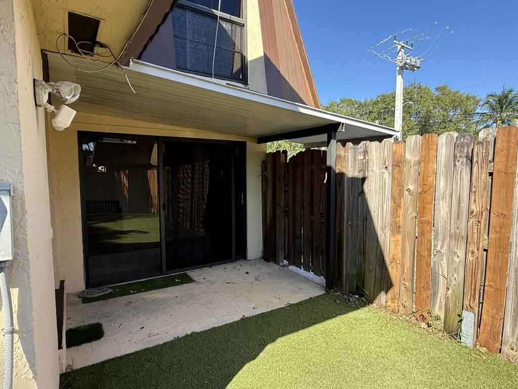This charming 2-bedroom, 1.5-bathroom townhouse in Palm Beach Gardens offers comfortable living in a highly desirable location. The home features a spacious living room and a dedicated dining area, perfect for relaxing or entertaining guests. Washer and dryer in the unit. Upstairs, the master bedroom features good closet space, his and her sinks a shower-tub combo and the bedroom opens up to a covered second floor balcony. Outside, a private fenced-in yard features a low-maintenance turf lawn and a cement patio, providing a perfect space for outdoor dining or lounging. With its blend of indoor comfort and outdoor appeal, this townhouse is a wonderful place to call home. Two parking spaces just outside the gate and the front door has a cover for those rainy days. Make an appointment today.