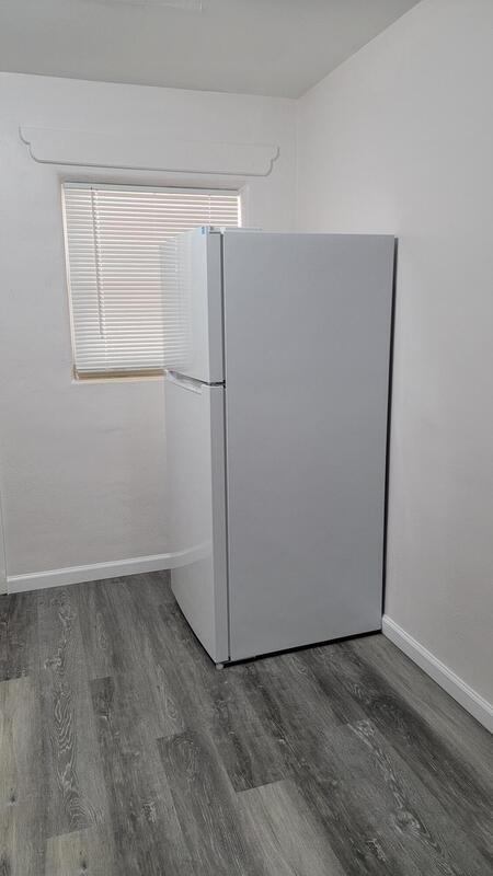 2 bedroom 1 bath first floor unit. recently painted, with new wood like vinyl flooring. New stove, window unit AC's private , small back yard . ready for move in.