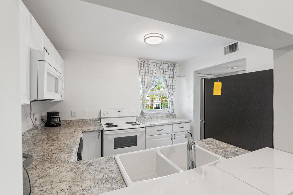 Get ready to live the good life at Village Royale on the Green! This stylish, fully furnished 1-bedroom, 1.5-bath condo has been beautifully updated and designed for comfort. The home features an upgraded kitchen and an enclosed balcony that can be perfectly used as a cozy guest room. Inside, you'll find updated flooring throughout (no carpet), spacious bedroom with a walk-in shower. Step outside and you're in the heart of VRG, right across from the main club house, where every day feels like vacation. Catch a show at the state-of-the-art theater, take a dip in the heated pool, hit the fitness center, join a game of billiards, or unwind with a good book in the library.