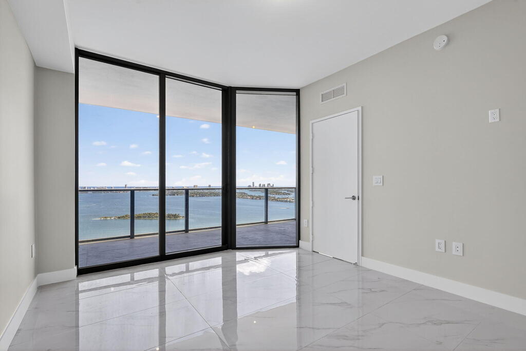 This one's on the 30th floor : higher, brighter, and with that full bay view everyone asks for. Offered furnished at $11,000 or unfurnished at $10,000. Same clean finishes, but with more light and privacy. Custom closets, drapes, shades, and lighting will be done. Two bedrooms plus office, three baths, one garage, one valet. Move-in ready in two weeks. Amenities are next level: pool, spa, gym, courts, kids' areas, and a private wine cellar. You're right between Midtown, Wynwood, and the beach. Visit today!!!