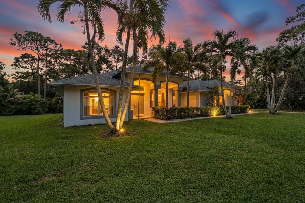 Escape to your own private, sustainable sanctuary in Loxahatchee, where the dream of true Florida country living meets modern, energy-efficient comfort. Tucked away on a tranquil, no-traffic street, this enchanting 3-bedroom, 3-bath home sits on a sprawling 1.31-acre lot with absolutely no HOA, granting you unmatched freedom to park your RVs, boats, or trailers. Embrace the wide-open sky and your incredible outdoor oasis, featuring a large screen-enclosed pool with a sundeck for endless Florida enjoyment, and a huge covered patio with outdoor fans perfect for dining al fresco or relaxing in the shade. Step inside to discover 2,335 sq ft of spacious, thoughtfully updated living, including a versatile flex room complete with a wet bar and full bath--ideal for a private office, media lounge,