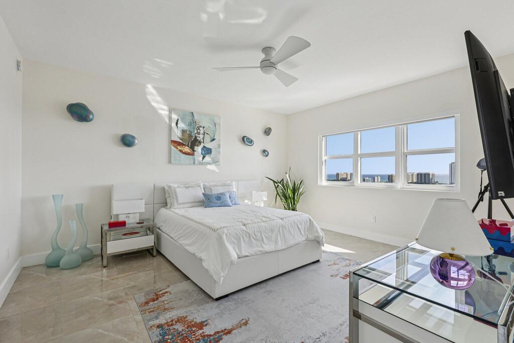 Beautiful sunrises and amazing intracoastal views from this 23rd floor Ocean Tower 2 bd plus Den/bdm. 2 bath designer home. Custom features: newer SS appliances, newer AC, new light fixtures, remodeled showers with frameless doors and hardware, new toilets, new 24 x 48 porcelain floors throughout, custom closets, and den converts into a bdrm with a bifold for privacy, and high-end furnishings. Amenities are endless: tennis courts,4 pickleball courts, bocce ball, fitness center, large heated pool, 4 grills, card rm poker rm, billiard rm sauna, steam rm, and an intracoastal gazebo, valet, 24 hr guard and much more! Public across the street and a full-service marina adjacent to the property and a 10 min. walk to the beach, PBI airport 20 mins. away. Best hidden gem in Palm Beach County!