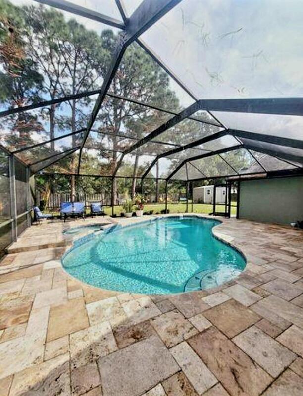 Welcome to your paradise retreat! This 3-bed, 2-bath Lovely CBS Pool Rental Home on over 1/3rd of an acre is a modern haven. Remodeled with pristine white tile flooring throughout, stainless steel appliances, it blends luxury and practicality. The screened 41' x 34' pool area is an entertainer's dream, with solar heating, a rescreened enclosure, and a slip-resistant deck. The Master Bath boasts a granite & mahogany vanity, dual sinks, and a spa-like shower. Large pocket sliding doors connect indoor and outdoor spaces seamlessly. The inside laundry room and 2-car garage add convenience. Located near St. Lucie West and Traditions, enjoy fine dining, shopping, and cultural events. With easy access to beaches, I-95, Florida Turnpike, and major cities.
