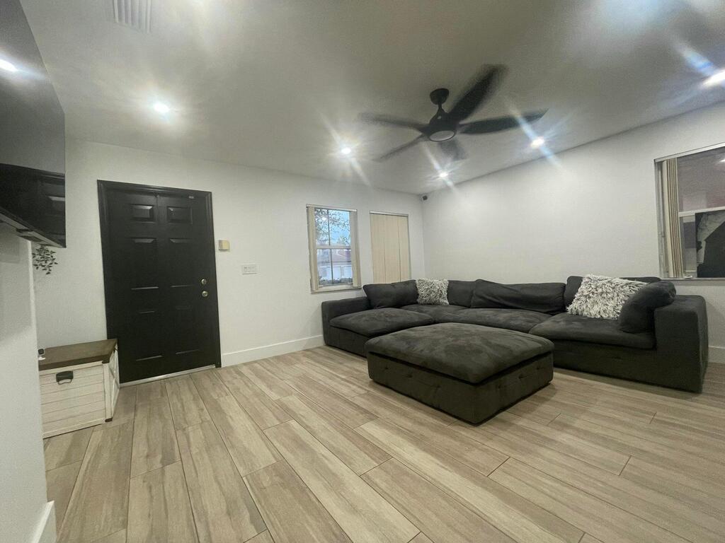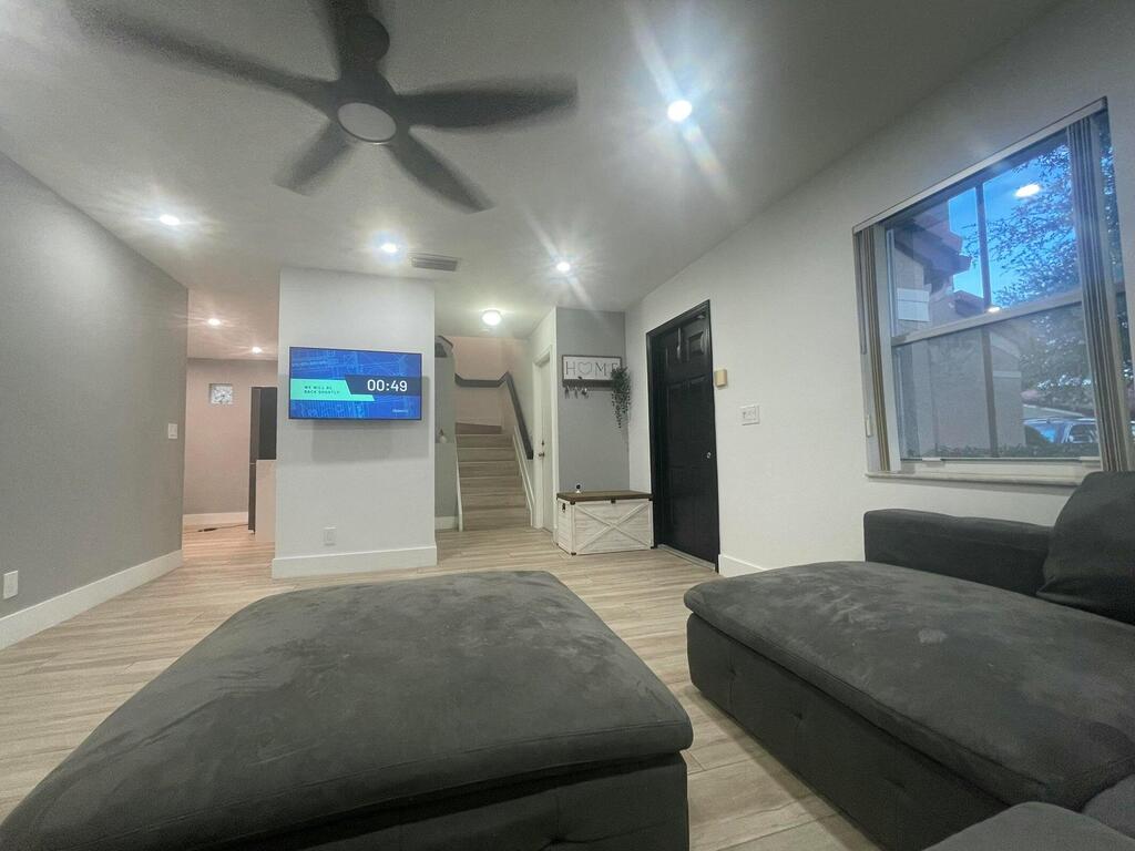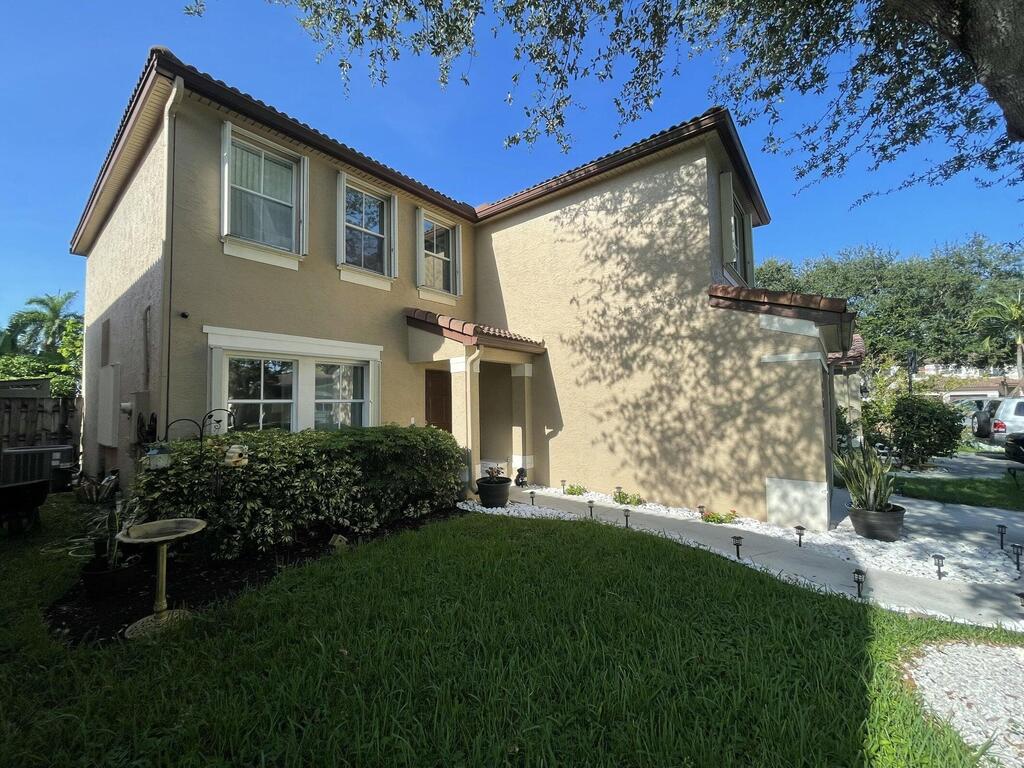 Gorgeous CBS 4-bedroom 2.5-bath home, perfectly situated in a lovely gated community. A lot of upgrades on this house such as, nice looking wood porcelain tile downstairs & upstairs, recessed lights, New Baseboards, New Painting & No Popcorn in the entire home. Landlord has remodeled the whole Kitchen being very spacious w/ beautiful granite, SS appliances, wood white cabinets. All Bedrooms upstairs have customized closets. One car garage & open driveway that can fit at least 3 extra cars. One of the biggest backyard in the community, offers fruit trees & a Coconut Tree. Large lot where you can enjoy your barbecue. Perfect Location close to everything and across QW Elementary school! Community has Swimming pool, playground to kids & nice Lake to enjoy! Only 3.8 Miles distance to the beach
