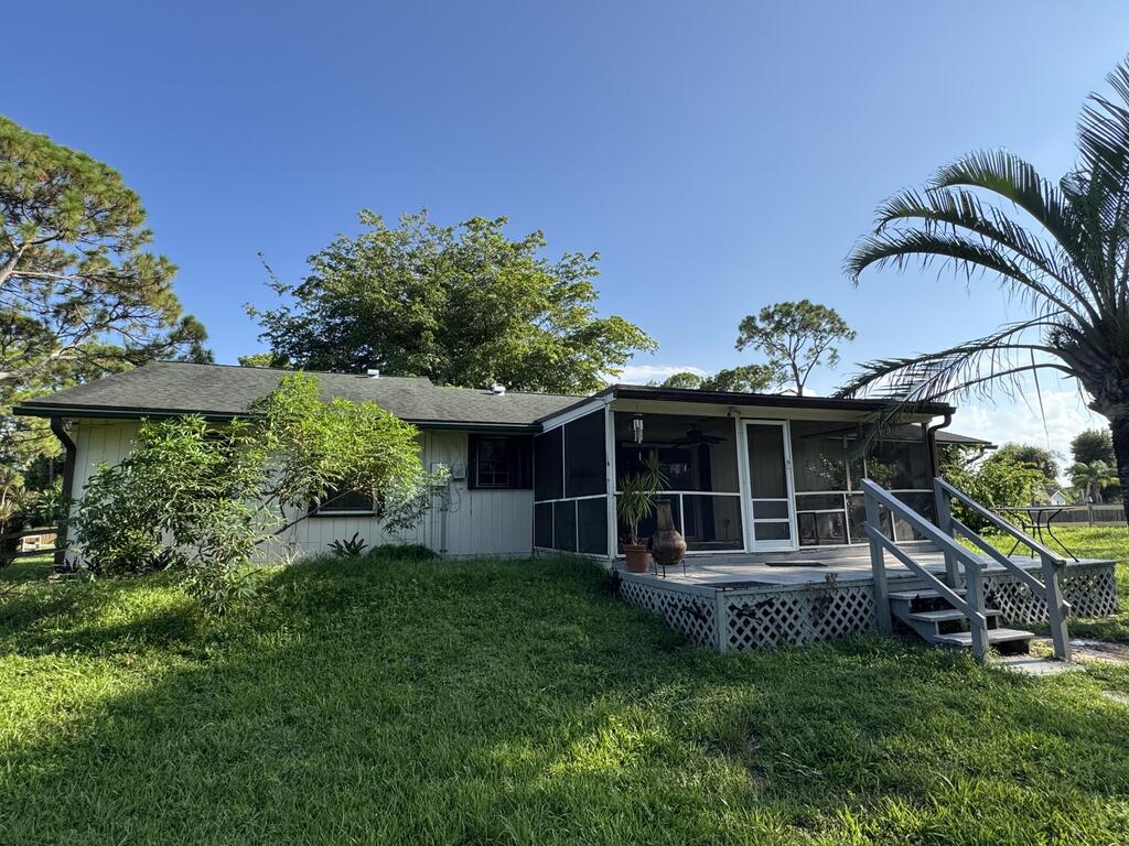 - Exterior FeaturesFenced Yard, Screened Patio and Shed