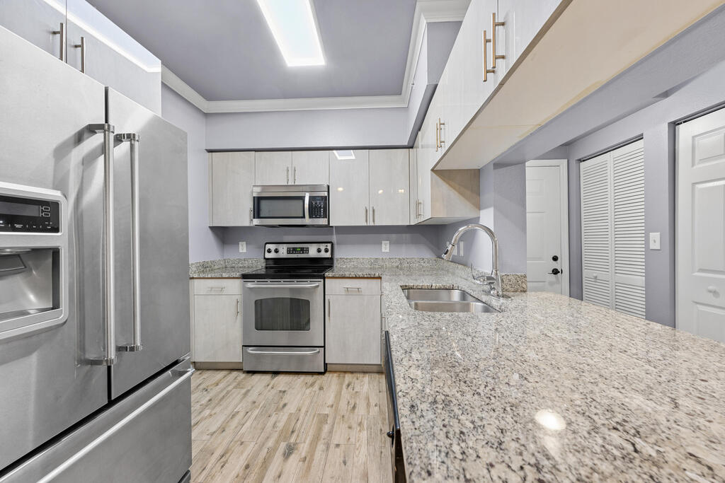 Freshly Renovated Condo in Emerald Dunes!Welcome to this beautifully updated first-floor residence located in the desirable gated community of Emerald Dunes. This stylish 2-bedroom, 2-bath condo offers an open layout with brand-new flooring, a modern kitchen featuring sleek cabinetry and stainless steel appliances, and tastefully renovated bathrooms.Enjoy the ease of ground-level living, a private patio, and in-unit laundry. The home is move-in ready and perfect for anyone seeking a comfortable, low-maintenance lifestyle in the heart of West Palm Beach.