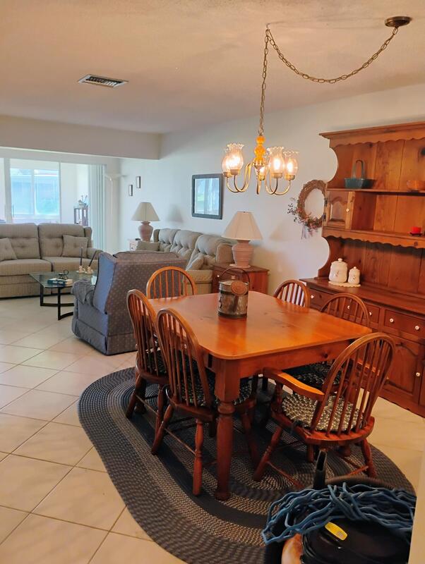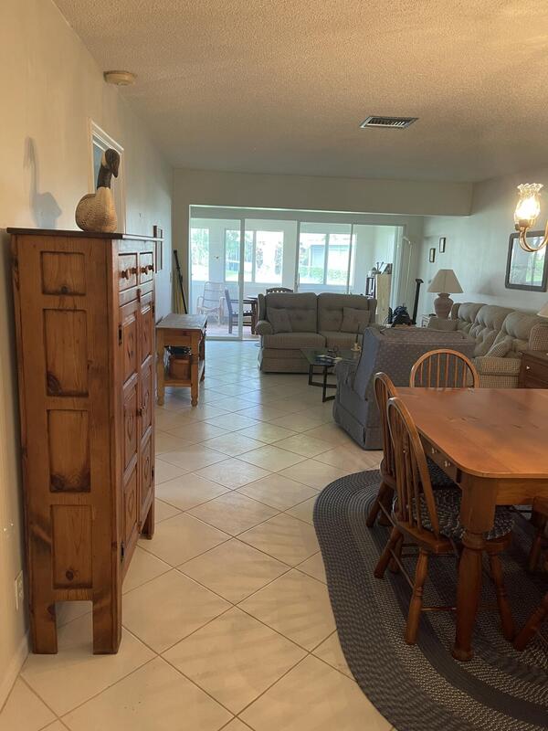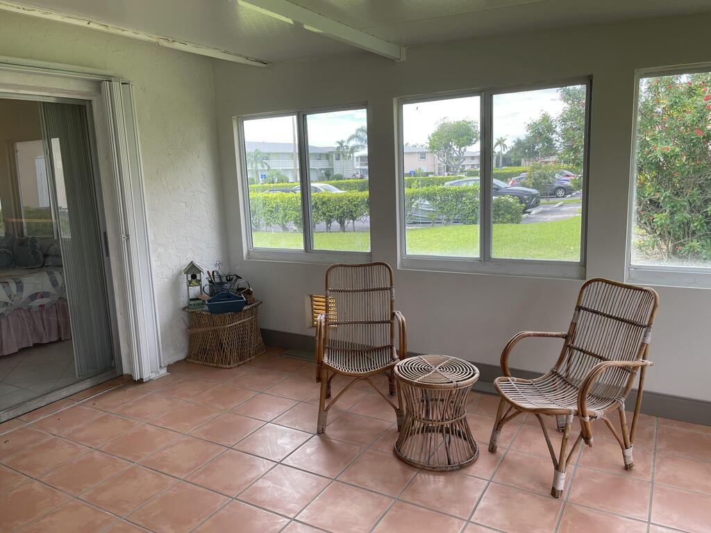 This charming villa offers it all! Nestled in the centrally located highly desirable gated 55+ Pines of Delray North community.Step inside this meticulous, beautiful, sun-drenched light bright and airy end unit villa.The east/west exposure guarantees natural lighting from sunup to sundown.This 2 bedroom, 2 bath unit has updated white shaker kitchen cabinets and bathroom vanities, tile throughout and neutral furnishing.Second bedroom is setup as a den with a pull-out queen sofa enabling for an easy transition into an overnight guest retreat.Two sets of expansive sliders in the the primary bedroom and living room open to a extra large enclosed porch for year round use.The community boasts 2 pools, two clubhouses, pickleball and tennis courts,fitness rooms, and many club