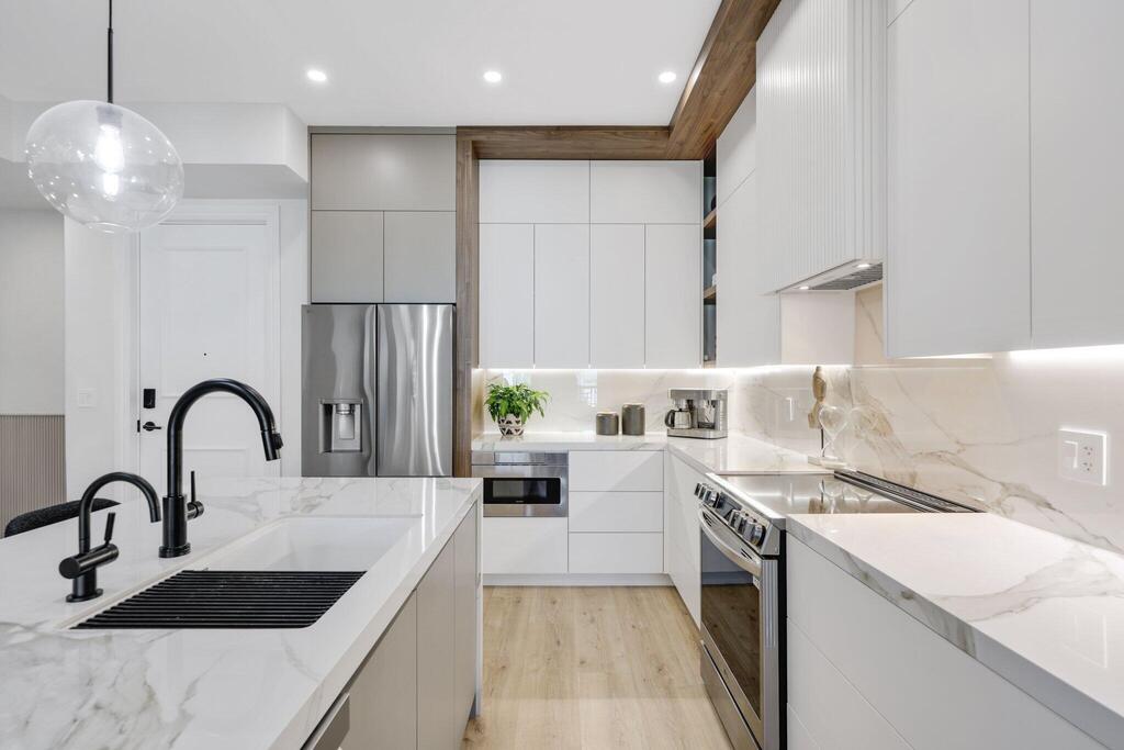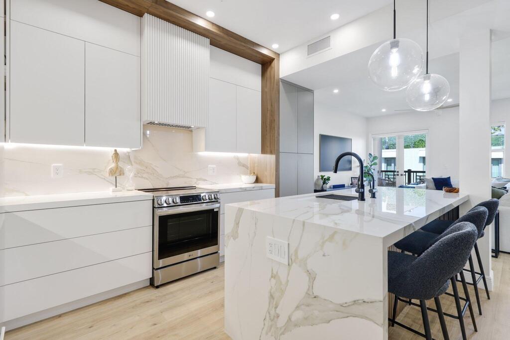 Now available for an annual lease! The crown jewel of downtown Delray Beach, this stunning top-floor corner unit in the prestigious luxury building of City Walk is more than a residence, it's a lifestyle. Completely reimagined from the ground up, every detail has been thoughtfully designed to create a light-filled sanctuary that blends modern luxury with zen-inspired sophistication. Raised ceilings, wide-plank blonde hardwood floors, and strategically opened walls provide an airy, open flow, while the concrete construction ensures privacy and peace with no neighbors above. At the heart of the home is a chef's dream kitchen, showcasing custom soft-close slatted cabinetry, a waterfall quartz marble island, and a seamless quartz backsplash that exudes sophistication.