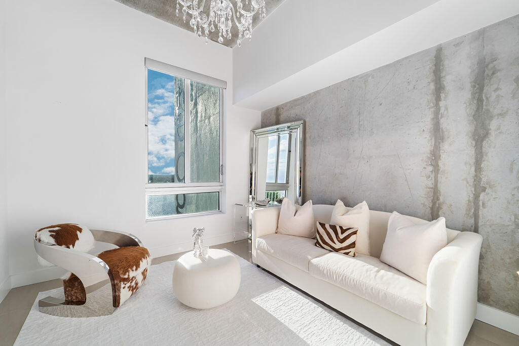 Luxurious 2/2 loft style PENTHOUSE with 12' concrete ceilings! Enjoy expansive views of the lake on your private terrace and watch amazing sunsets! Beautiful light fixtures can be seen throughout the residence. Featuring a gorgeous living and dining room area with chic stylish furnishings, a fireplace and Lutron shades w/smart home technology, Designer features include tile floor, luxury kitchen with SS appliances, granite counter tops with tile backsplash. The sleek primary bedroom en-suite has floor to ceiling blackout curtains, large walk-in closet and flat screen TV. The Edge has a 24hr lobby attendant, garage parking and fabulous amenities, including a rooftop Olympic sized pool, club house, fitness center, Zen/Yoga room and spa. Located downtown close to everything you need!