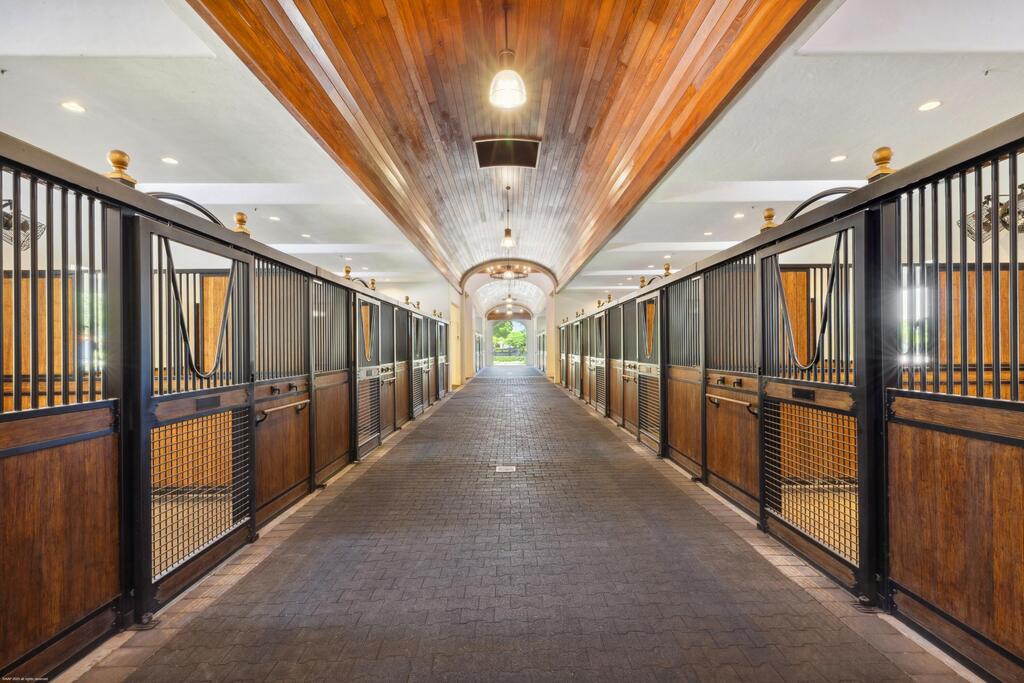 - Equestrian FeaturesBoarding Allowed, Bridle Path/Trails, Center Aisle, Grooms Quarters, Lounge, Office, Paddocks, Stable and Water & Electric