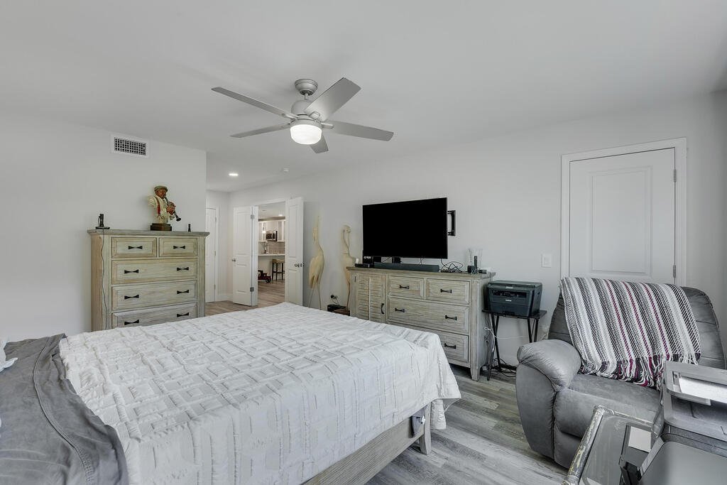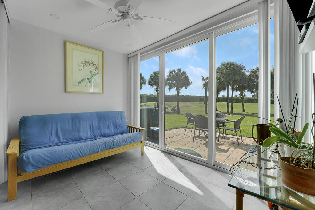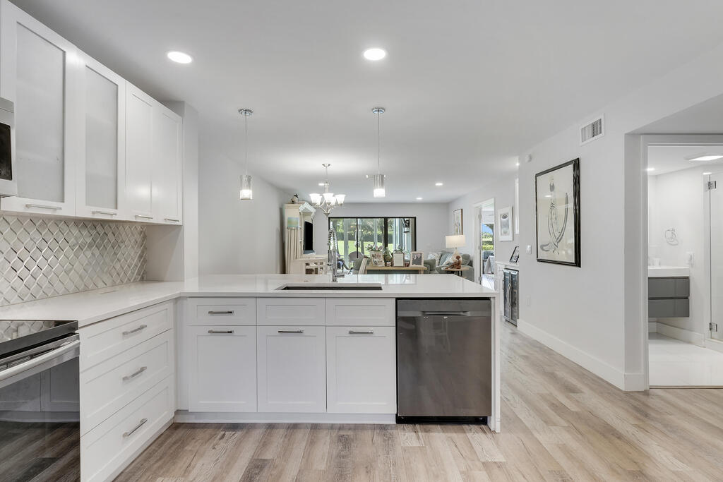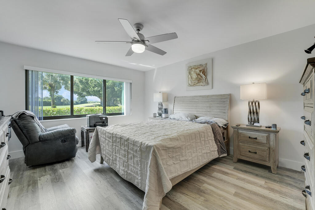 Welcome to your dream retreat in Hunters Run Country Club! This beautifully remodeled 2-bedroom, 2-bathroom first-floor condo offers a bright, open floor plan with picturesque golf course views. The modern white kitchen features a waterfall-edge island and sleek finishes, setting the tone for elegance throughout. Enjoy spa-inspired bathrooms, wood-look flooring, and a double-door entry to the primary suite for an added touch of sophistication. The glass-enclosed lanai opens to a private patio, the perfect spot to unwind and take in the serene scenery. Peace of mind comes with full hurricane-impact windows and sliders. Nestled within the amenity-rich Hunters Run Country Club, residents enjoy an active, social lifestyle with three golf courses, 18 tennis courts, 12 pickleball courts,