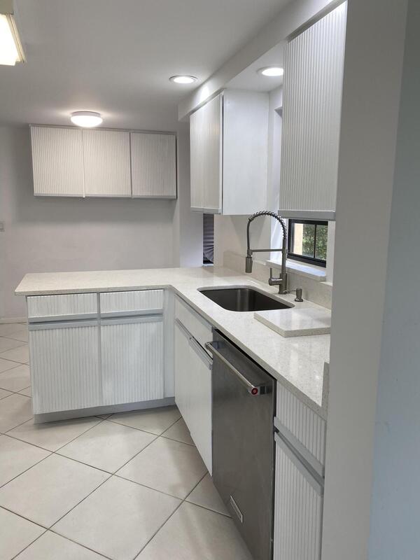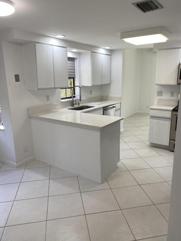 Beautiful updated townhouse in desirable La Mirada at Boca Pointe. Beautiful quartz counter tops in kitchen and baths. Stainless steel appliances. Cathedral ceilings with skylights in living areas. Large white tile in living areas. Beautiful gray vinyl floors in stairs and bedrooms. All 3 bedrooms upstairs. Short walk to community pool. Great area close to everything: I95, Turnpike, shopping and dining. Various club memberships available but not mandatory.
